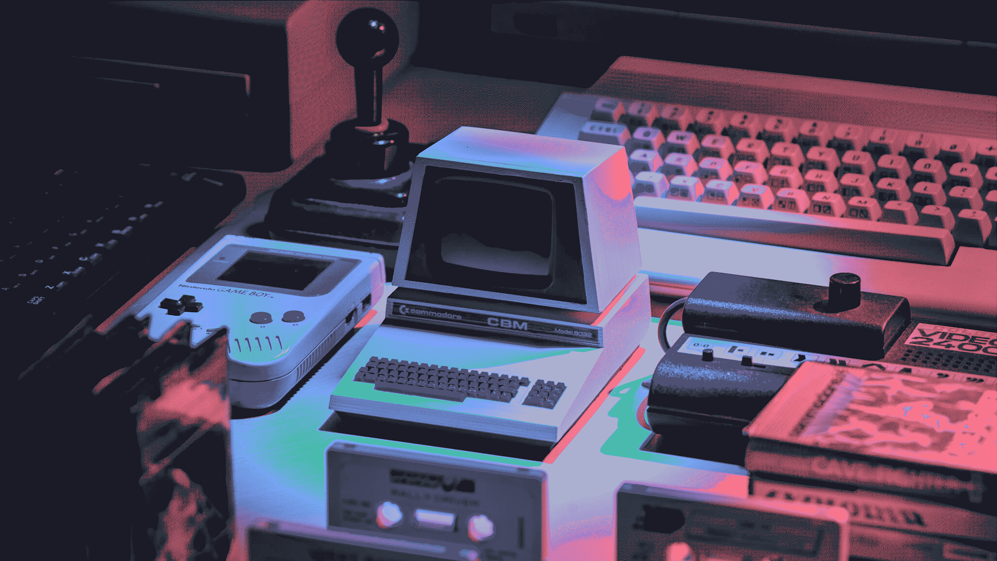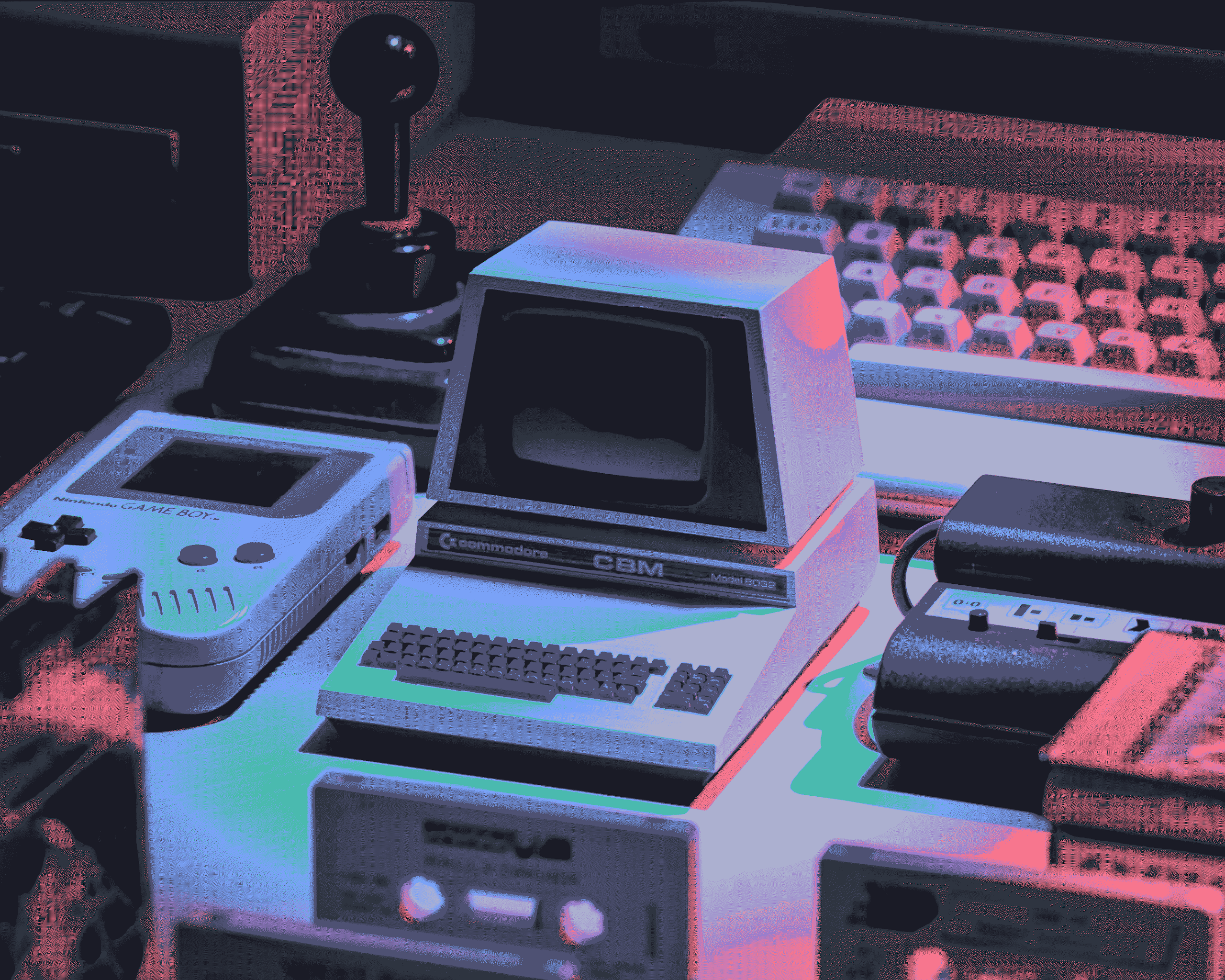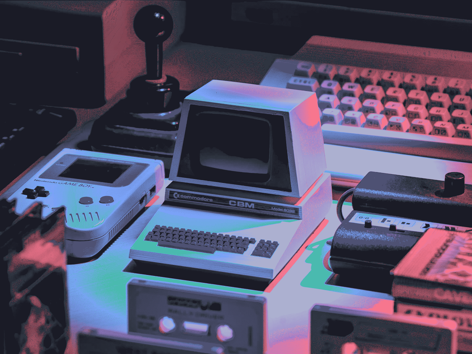 Retro Gaming, Vintage Computer, 80s Technology, Video Game Console. 4K Desktop and Mobile Wallpaper Background with a maximum resolution of 3840x2160 px.