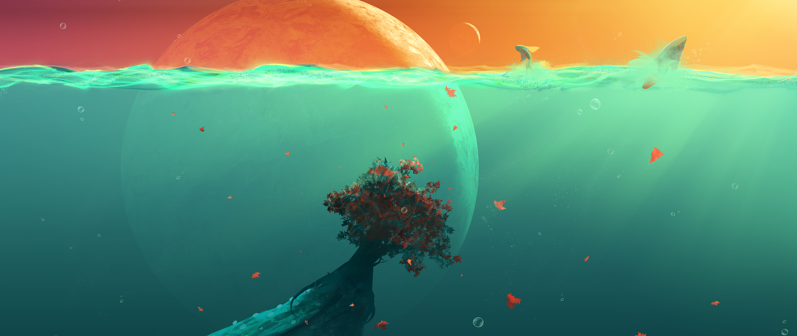 Underwater, Ocean, Surreal, Art 2K Desktop and Mobile Wallpaper Background with a maximum resolution of 2560x1440 px.