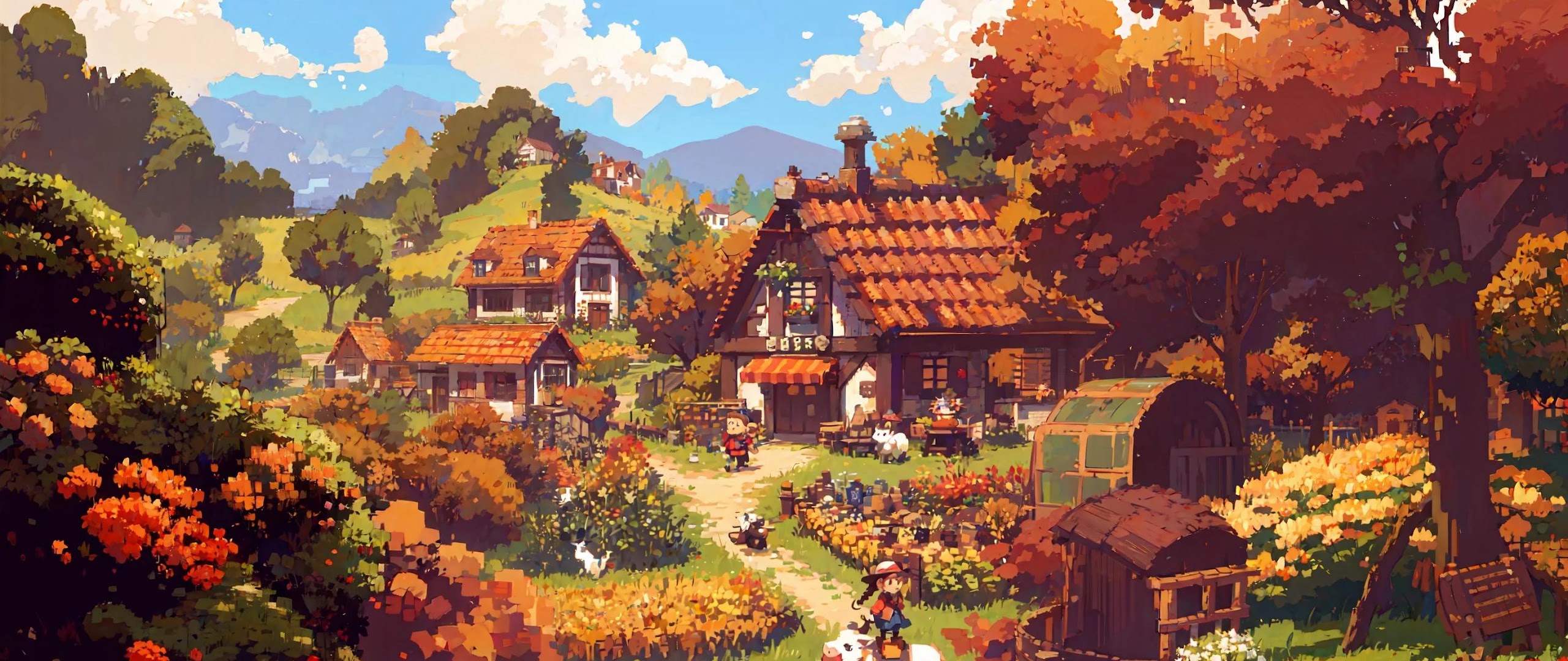 Village, Countryside, Autumn, Landscape 2K Desktop and Mobile Wallpaper Background with a maximum resolution of 2912x1632 px.