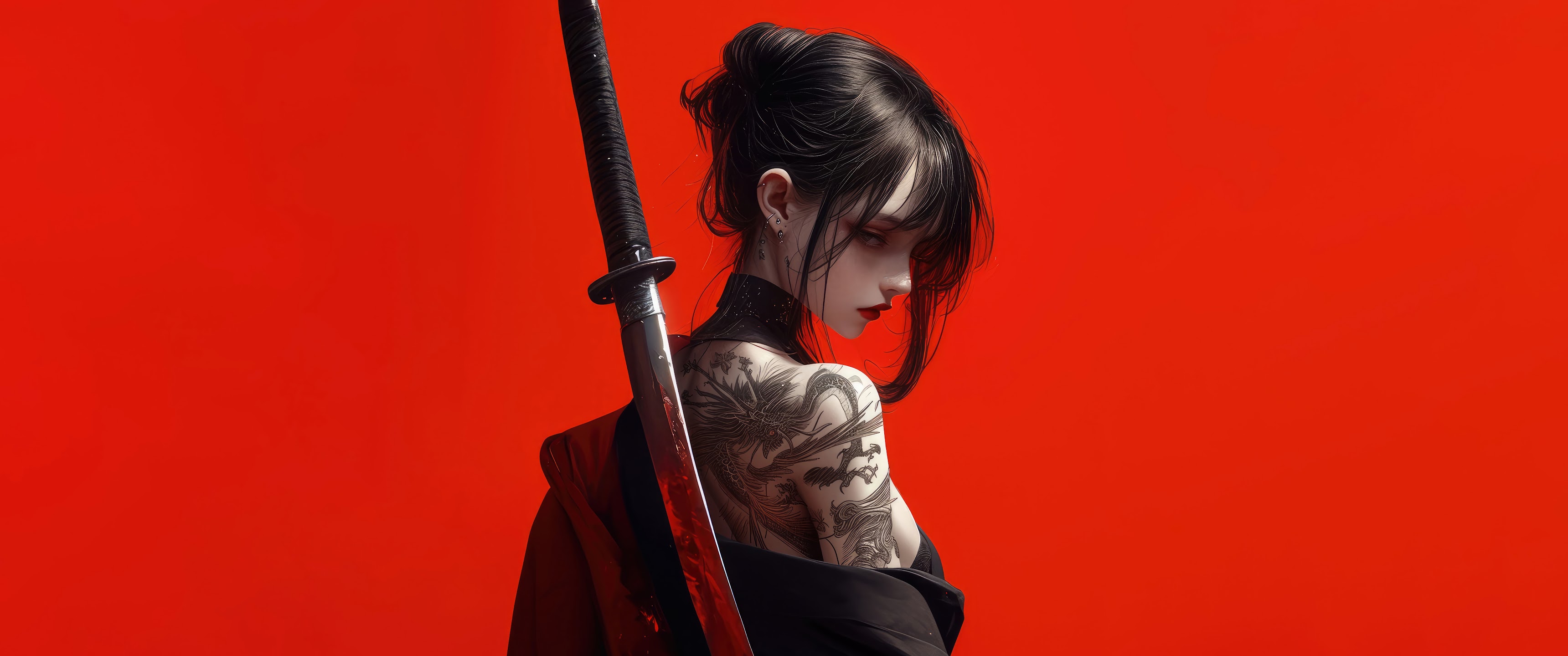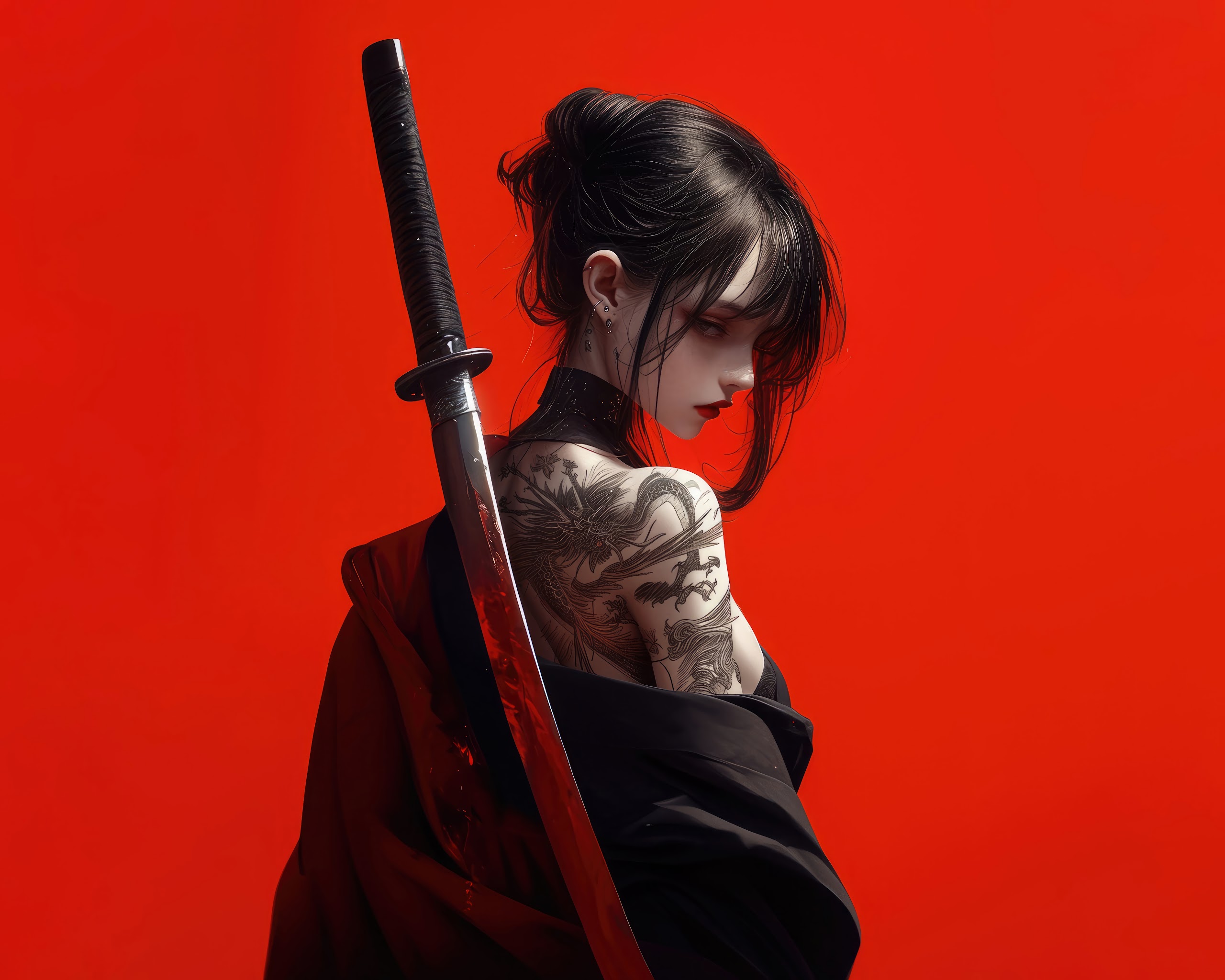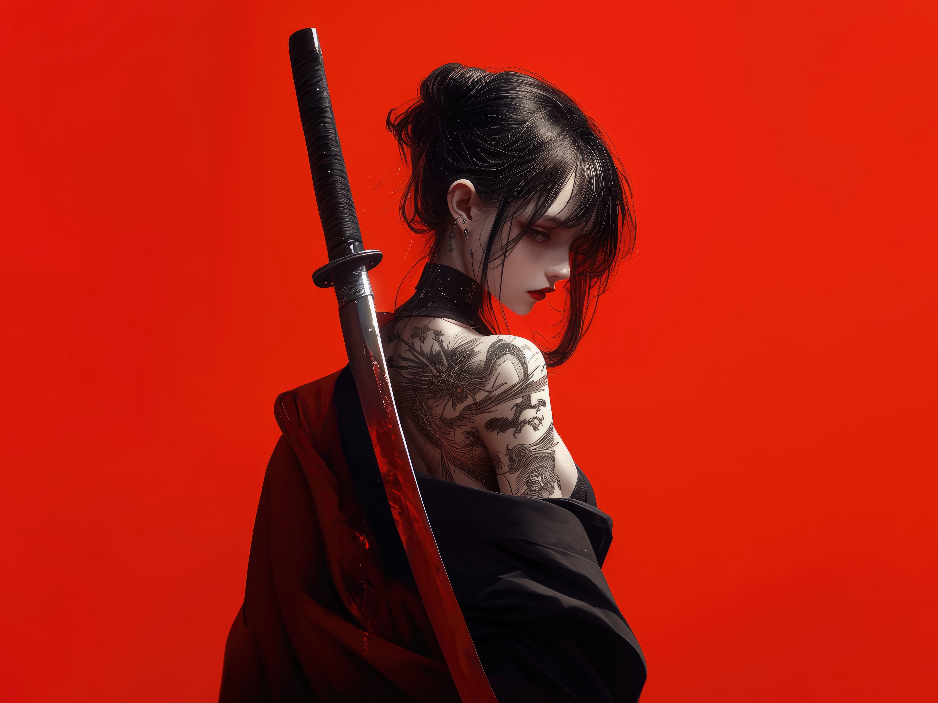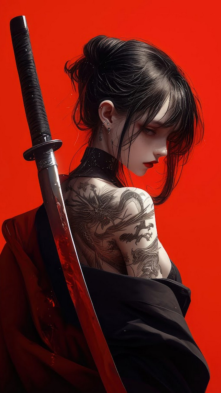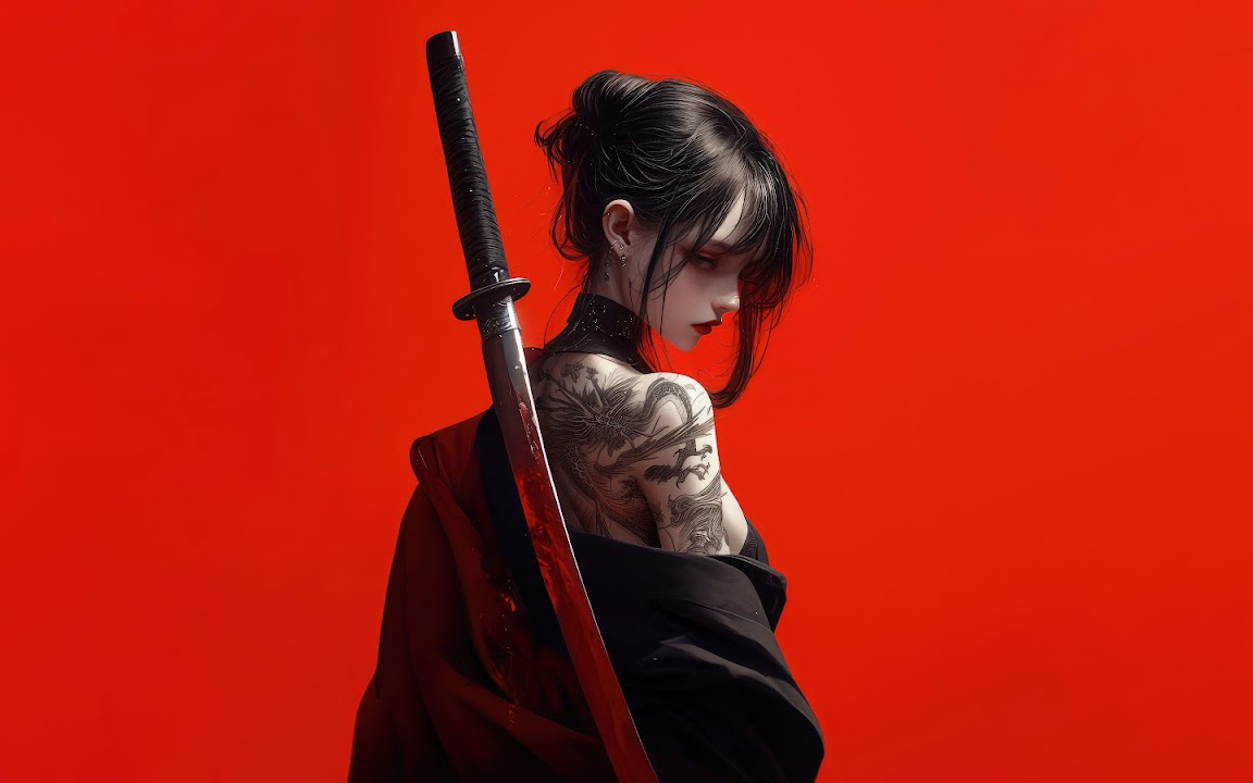 Anime, Samurai, Sword, Girl 8K Desktop and Mobile Wallpaper Background with a maximum resolution of 7680x4320 px.