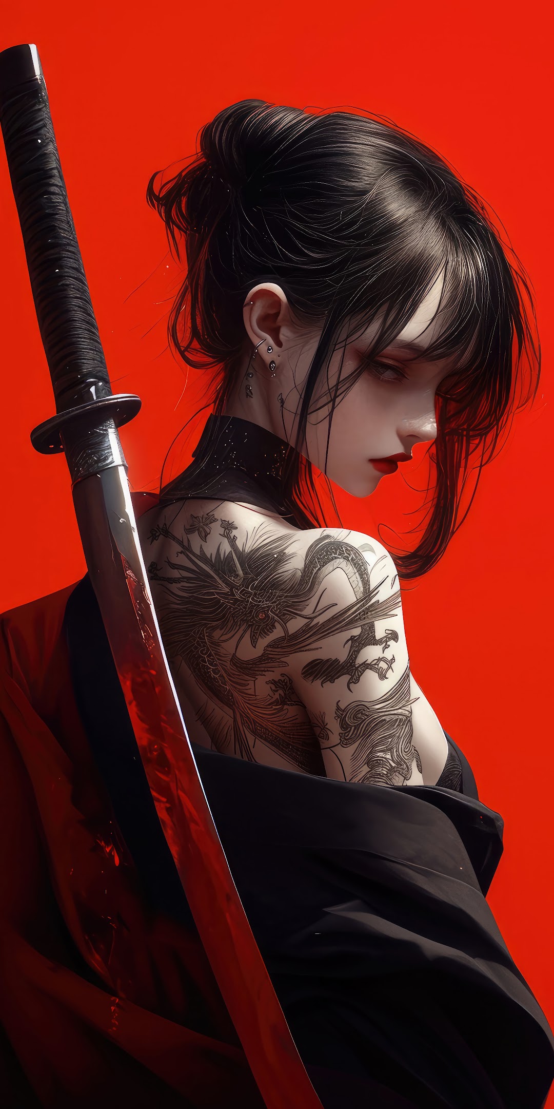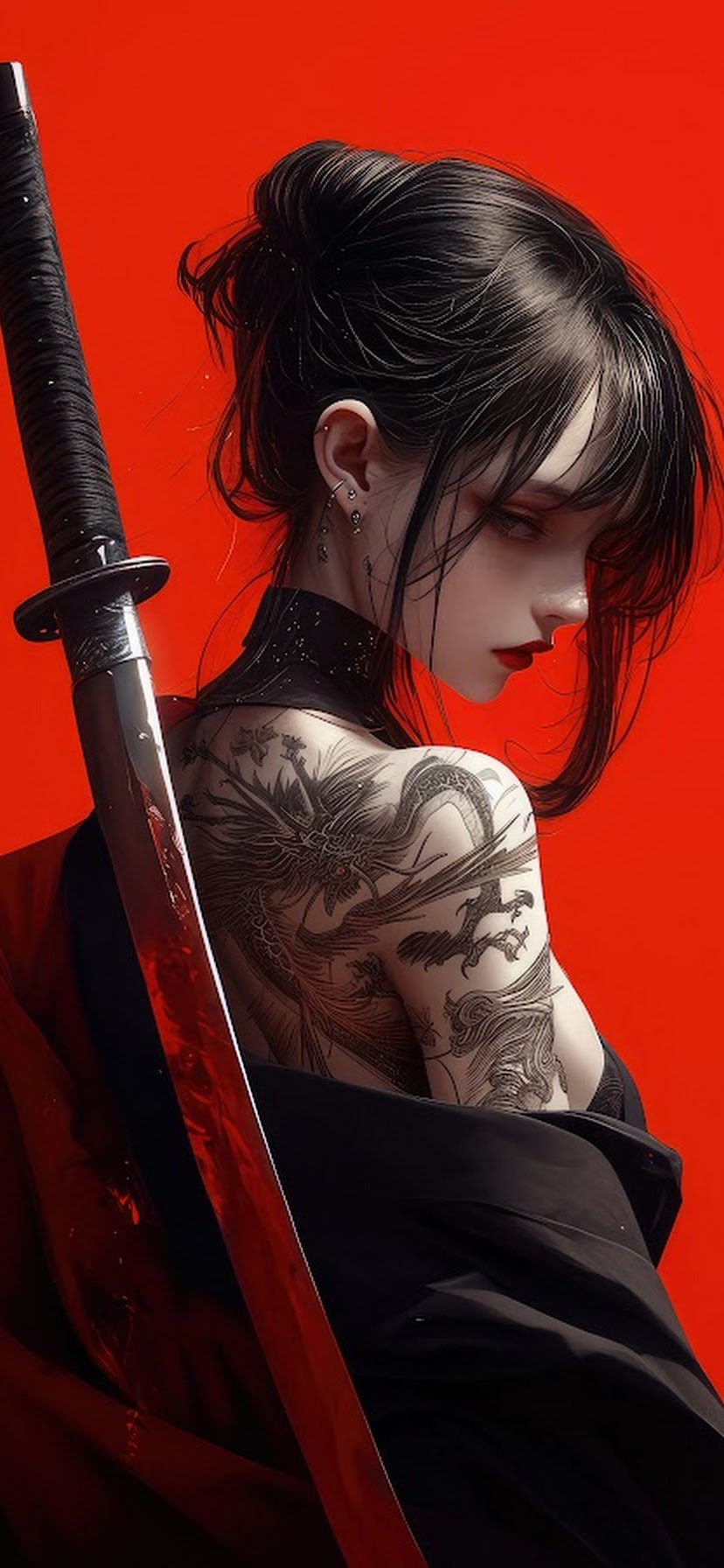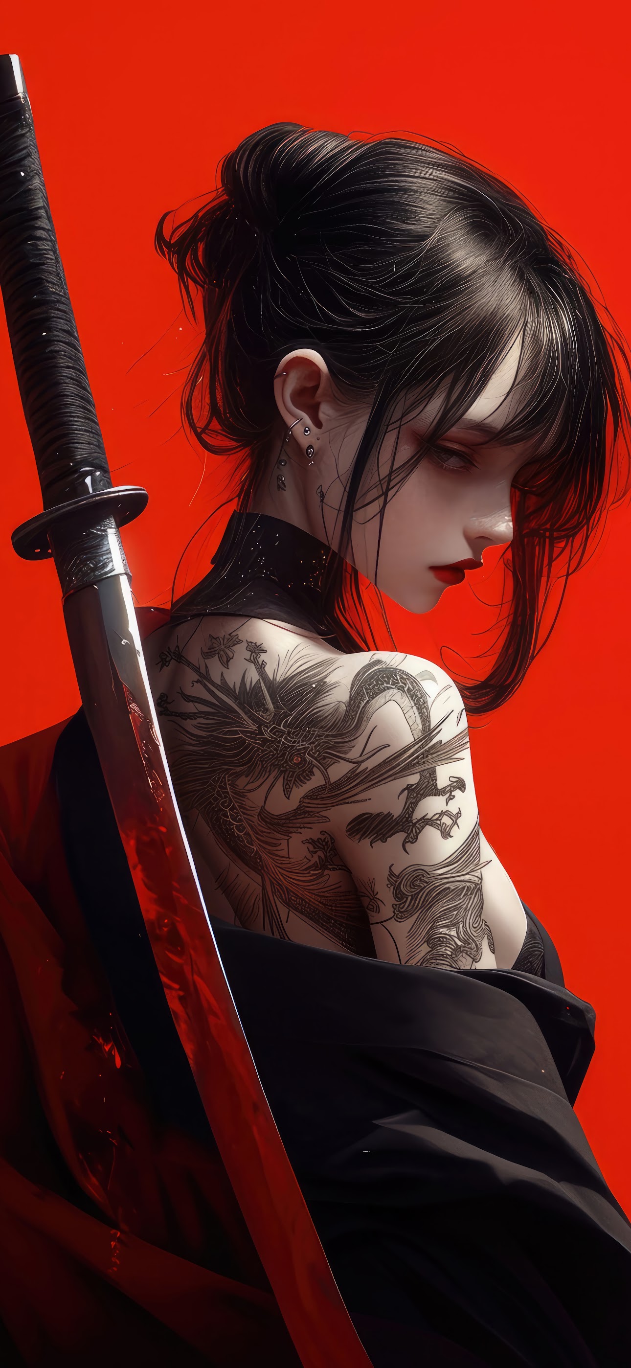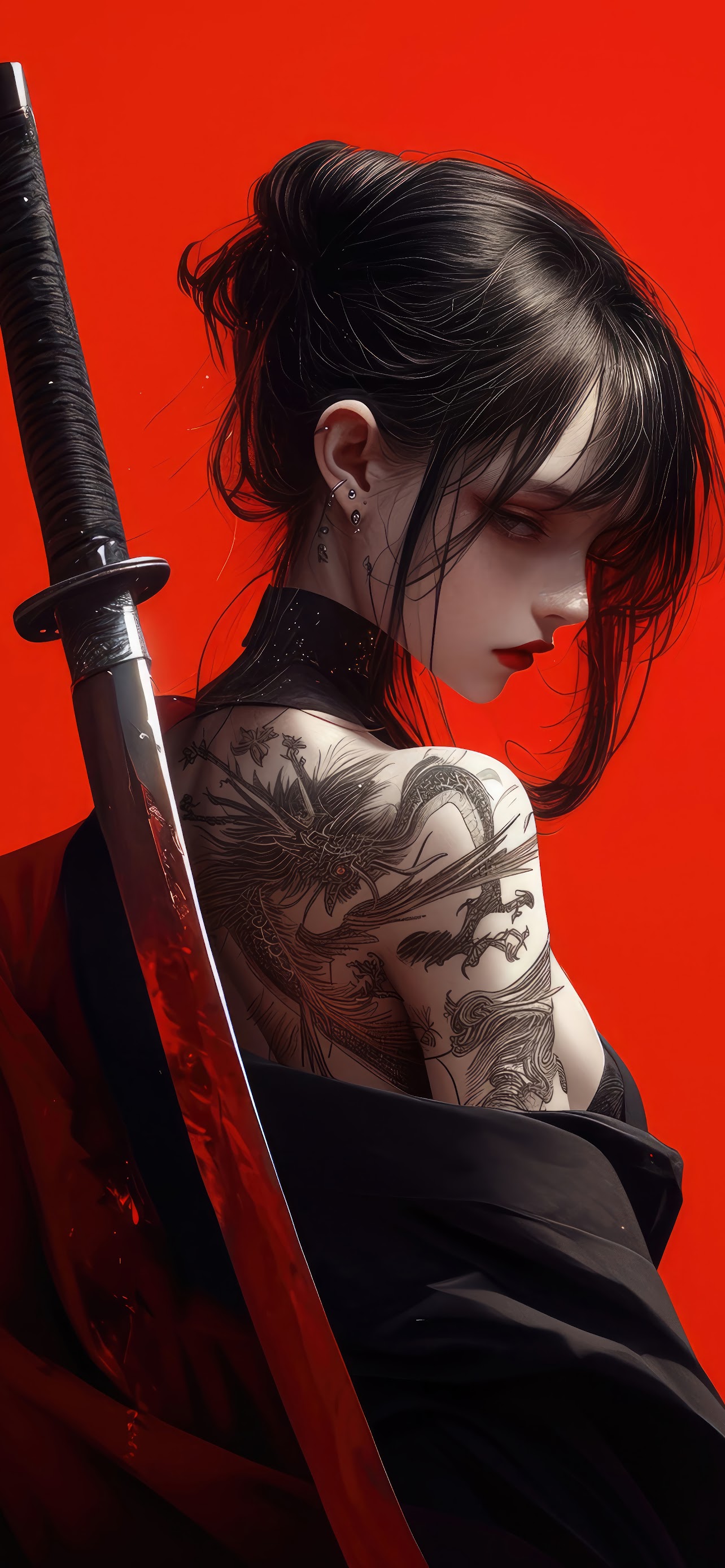 Anime, Samurai, Sword, Girl 8K Desktop and Mobile Wallpaper Background with a maximum resolution of 7680x4320 px.