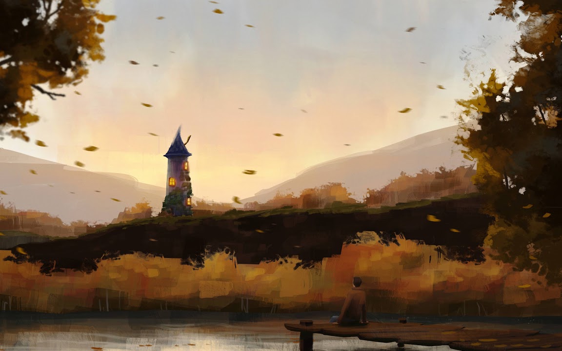 Autumn, Landscape, Tower, Fantasy 4K Desktop Wallpaper