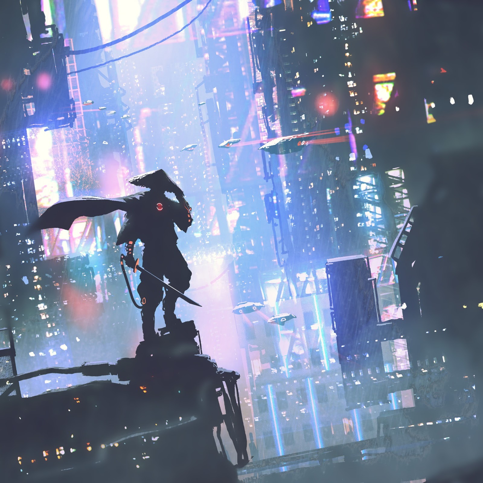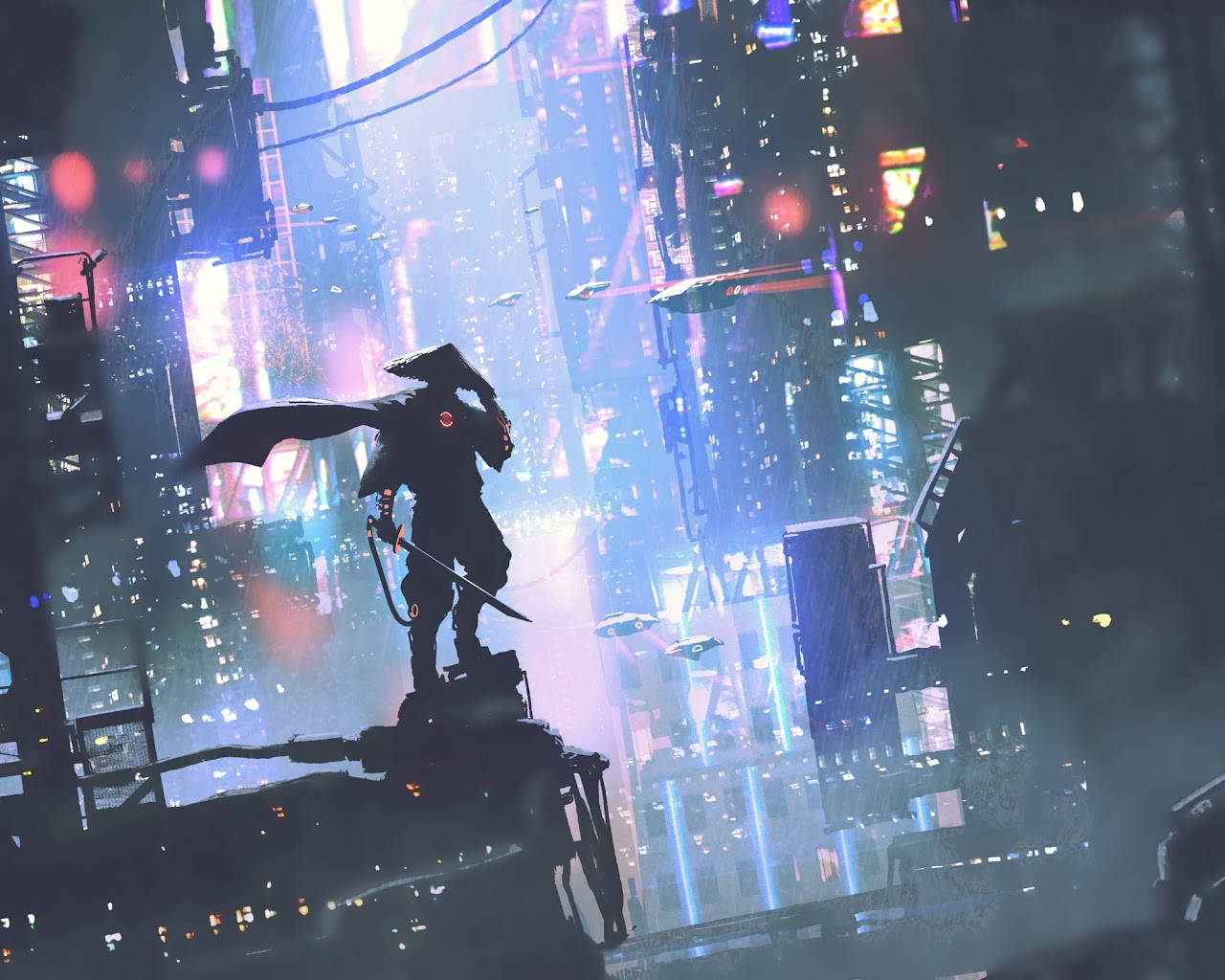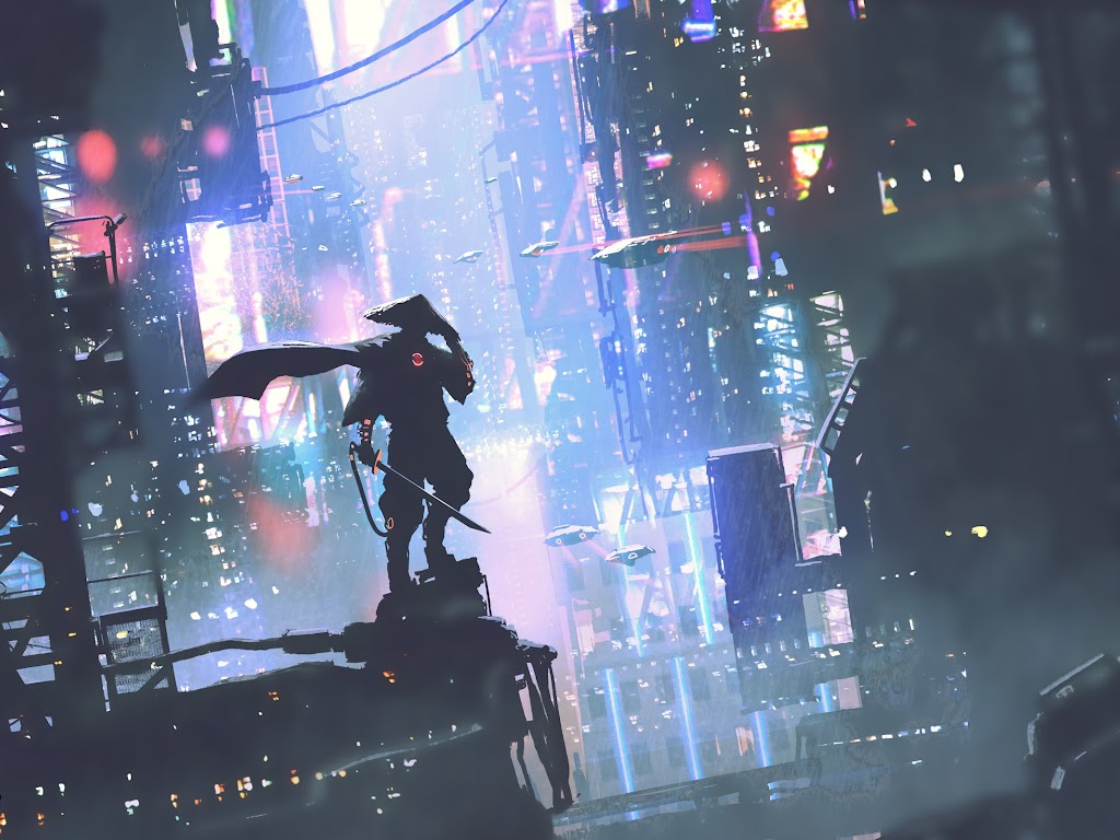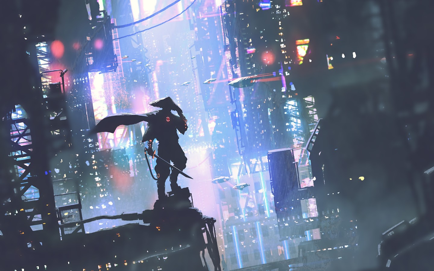 Cyberpunk, Futuristic City, Neon Lights, Digital Art Full HD Desktop and Mobile Wallpaper Background with a maximum resolution of 2400x1600 px.