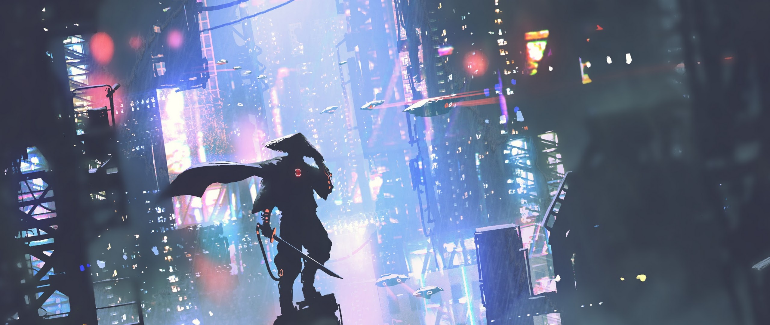 Cyberpunk, Futuristic City, Neon Lights, Digital Art Full HD Desktop and Mobile Wallpaper Background with a maximum resolution of 2400x1600 px.