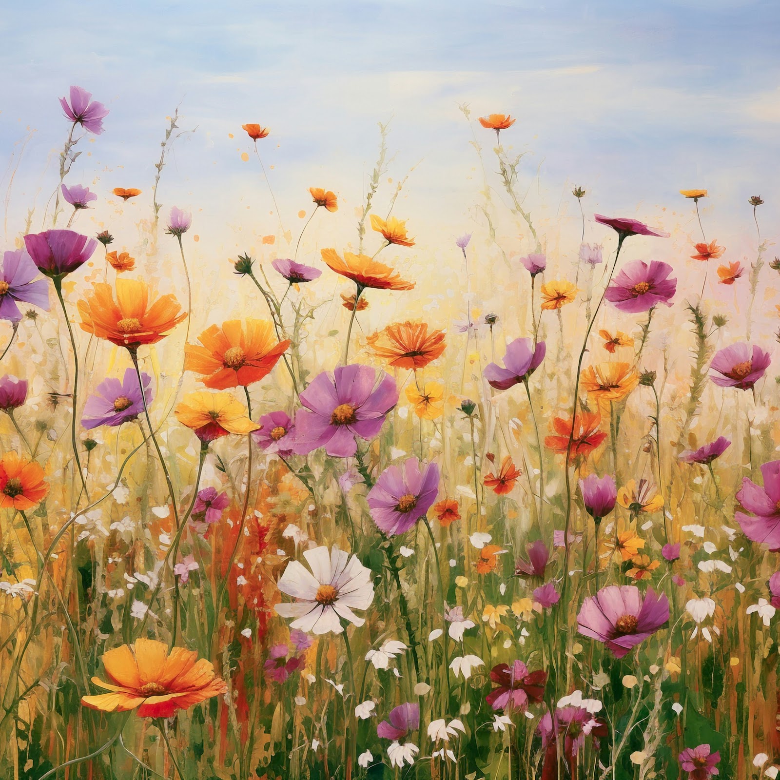 Flower Field, Wildflower Meadow, Flower Art, Summer Flowers Nature Art 4K Desktop and Mobile Wallpaper Background with a maximum resolution of 4000x3000 px.