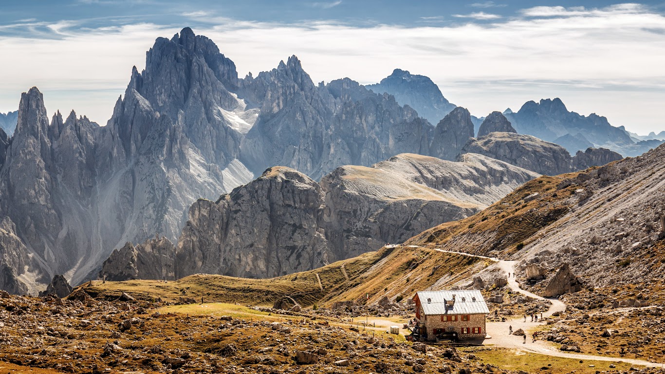 Mountain Landscape, Dolomites, Hiking, Mountain Hut 4K Desktop Wallpaper