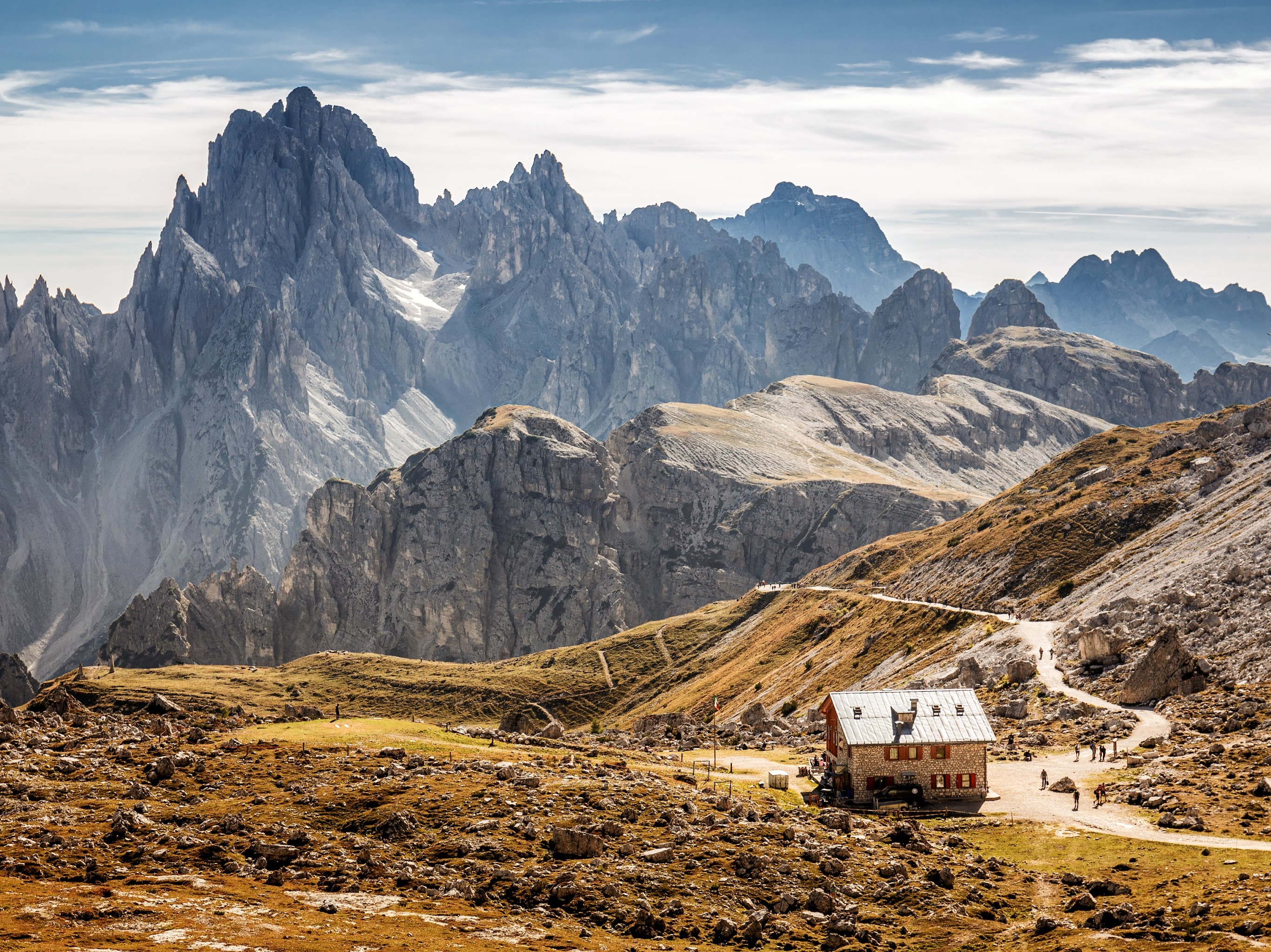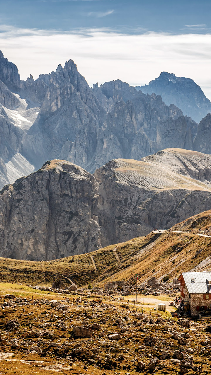 Mountain Landscape, Dolomites, Hiking, Mountain Hut 4K Desktop and Mobile Wallpaper Background with a maximum resolution of 3840x2400 px.