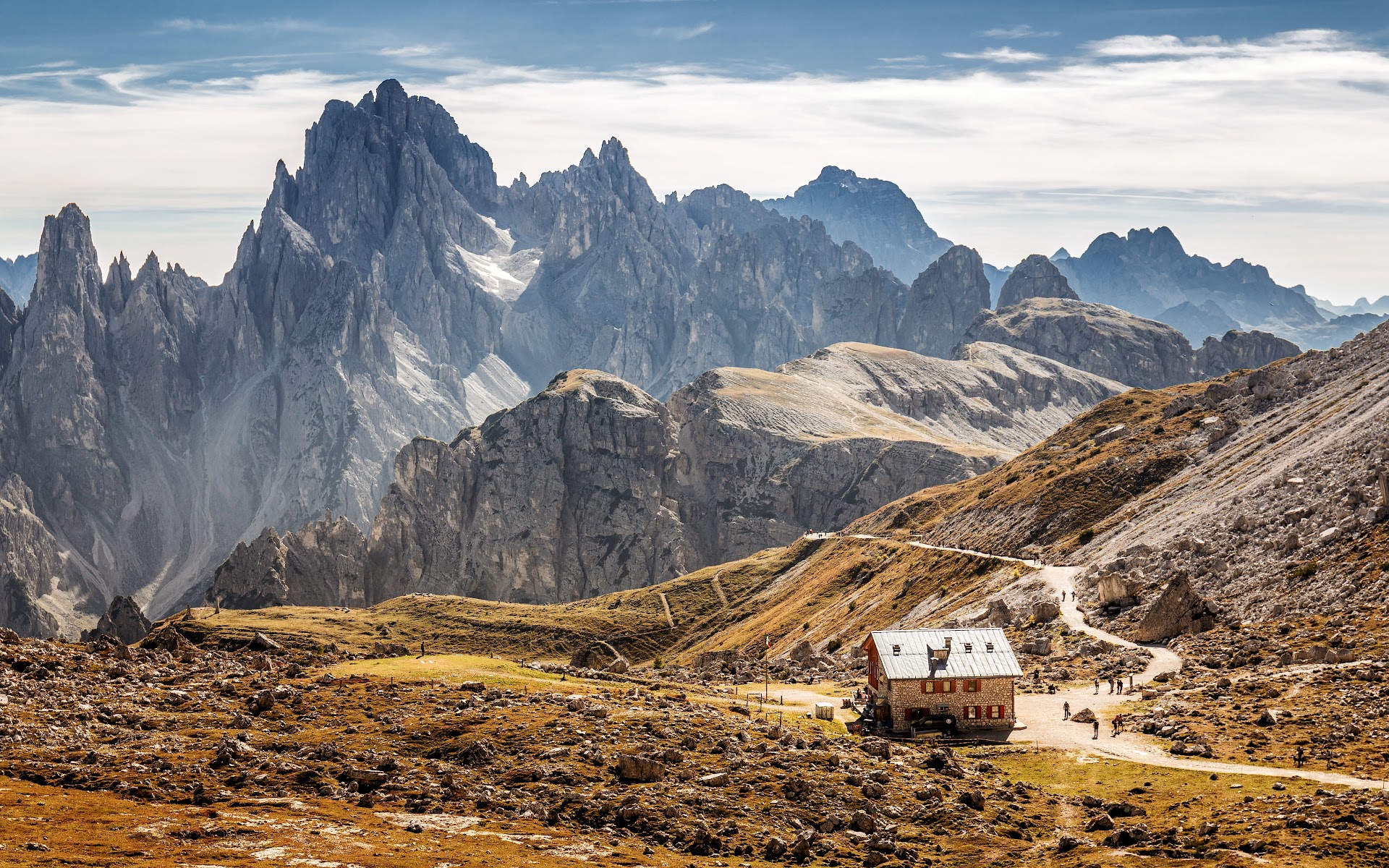 Mountain Landscape, Dolomites, Hiking, Mountain Hut 4K Wallpaper Background (3840x2400)
