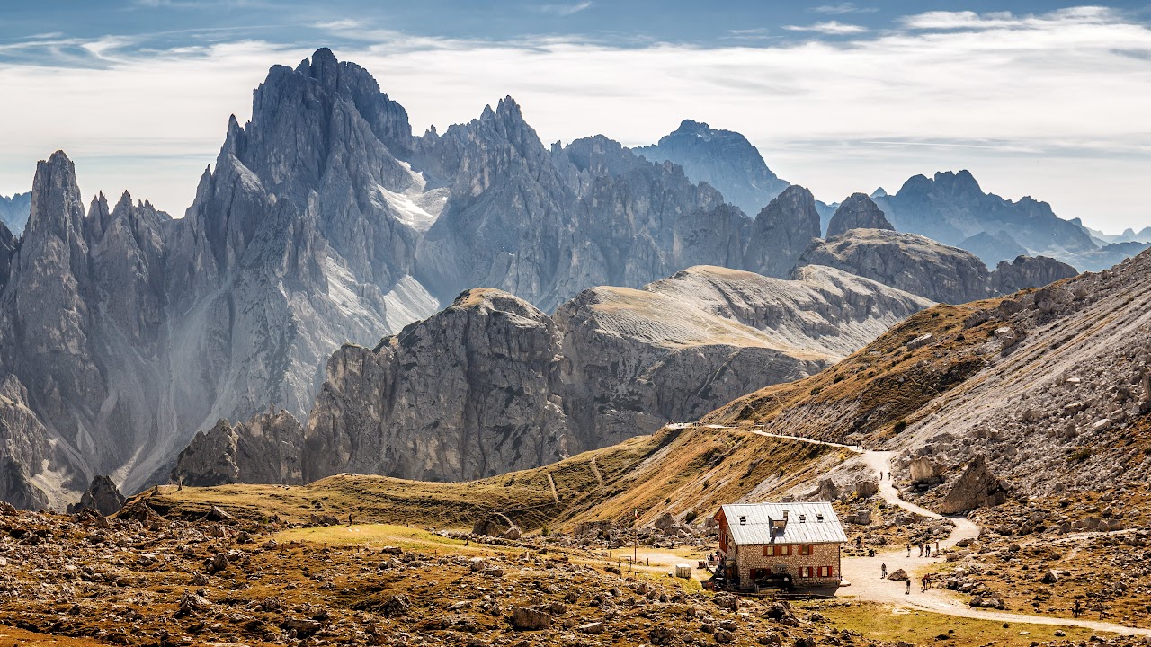 Mountain Landscape, Dolomites, Hiking, Mountain Hut 4K Desktop and Mobile Wallpaper Background with a maximum resolution of 3840x2400 px.