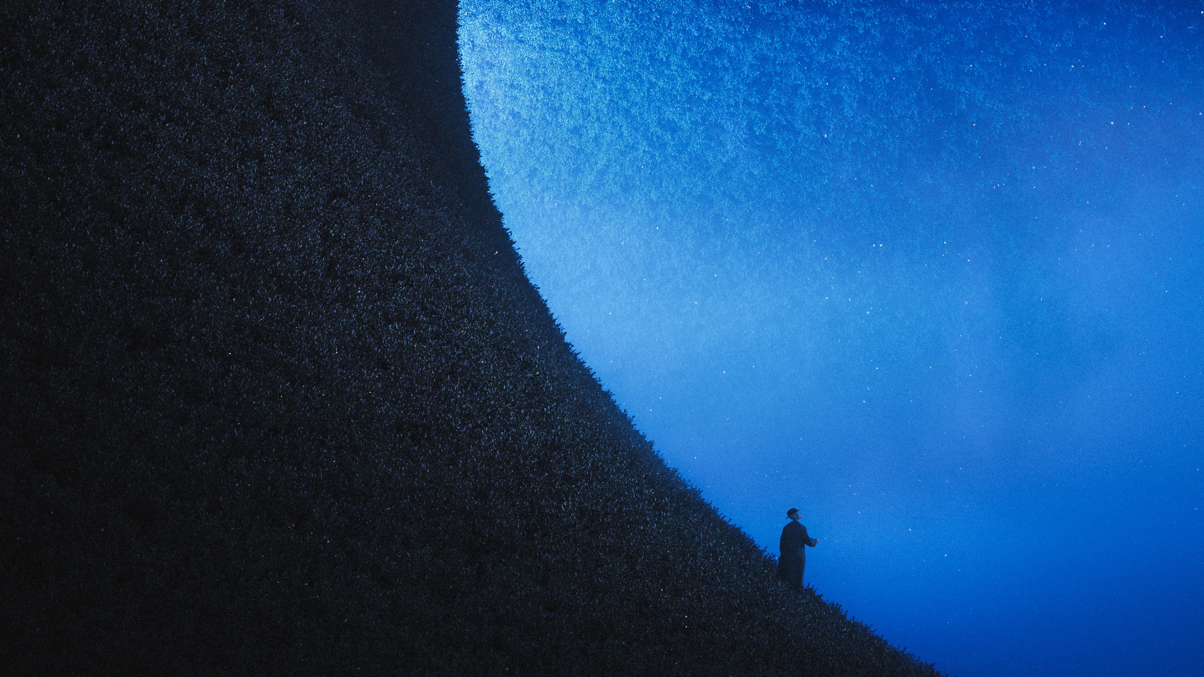 Night Sky, Silhouette, Starry, Dark Blue 4K Desktop and Mobile Wallpaper Background with a maximum resolution of 4000x2250 px.