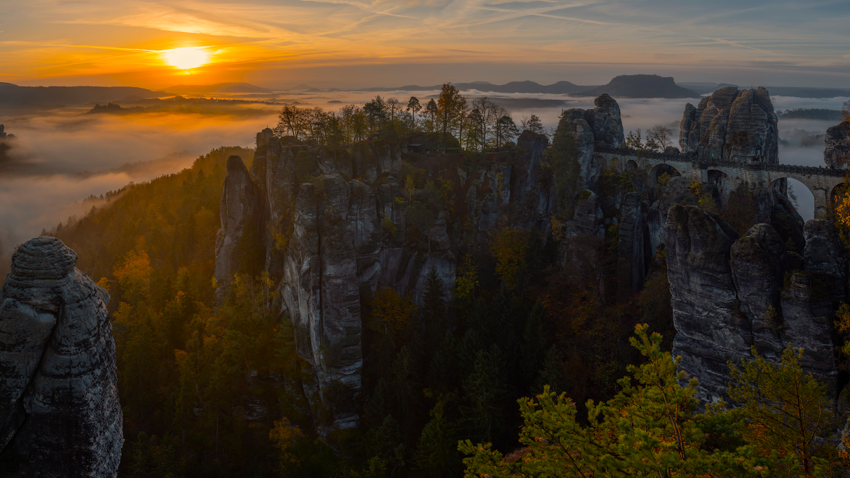 Sunrise, Mountain, Forest, Cliff 4K Wallpaper Background (3840x2160)