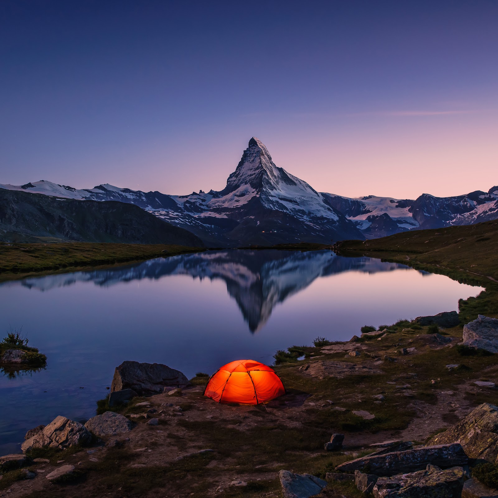Camping, Mountain, Switzerland, Lake 5K Desktop Wallpaper