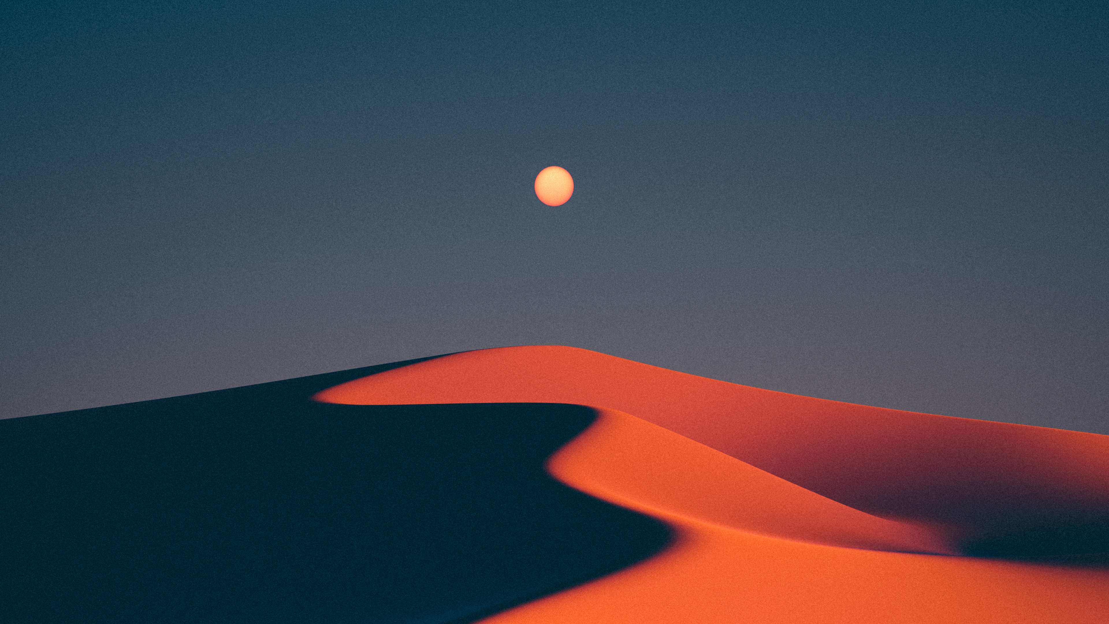 Desert, Sand Dune, Sunset, Moon 4K Desktop and Mobile Wallpaper Background with a maximum resolution of 3840x2160 px.