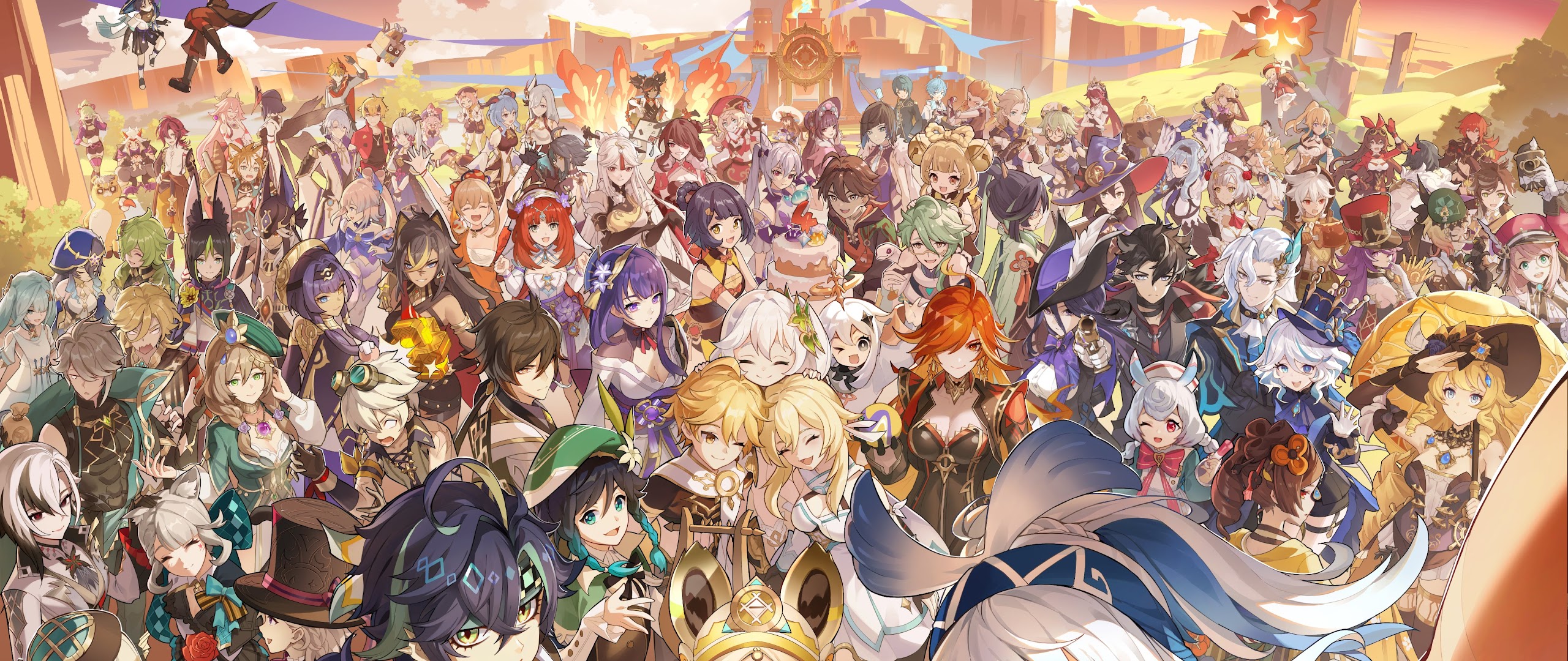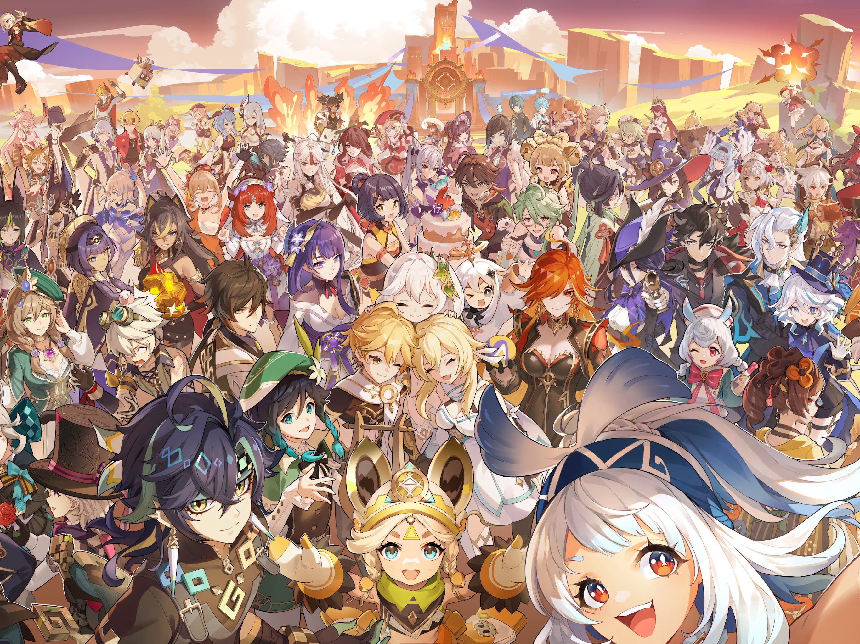 Genshin Impact, Anime, Game Characters, Video Game Art 4K Desktop and Mobile Wallpaper Background with a maximum resolution of 4096x2303 px.