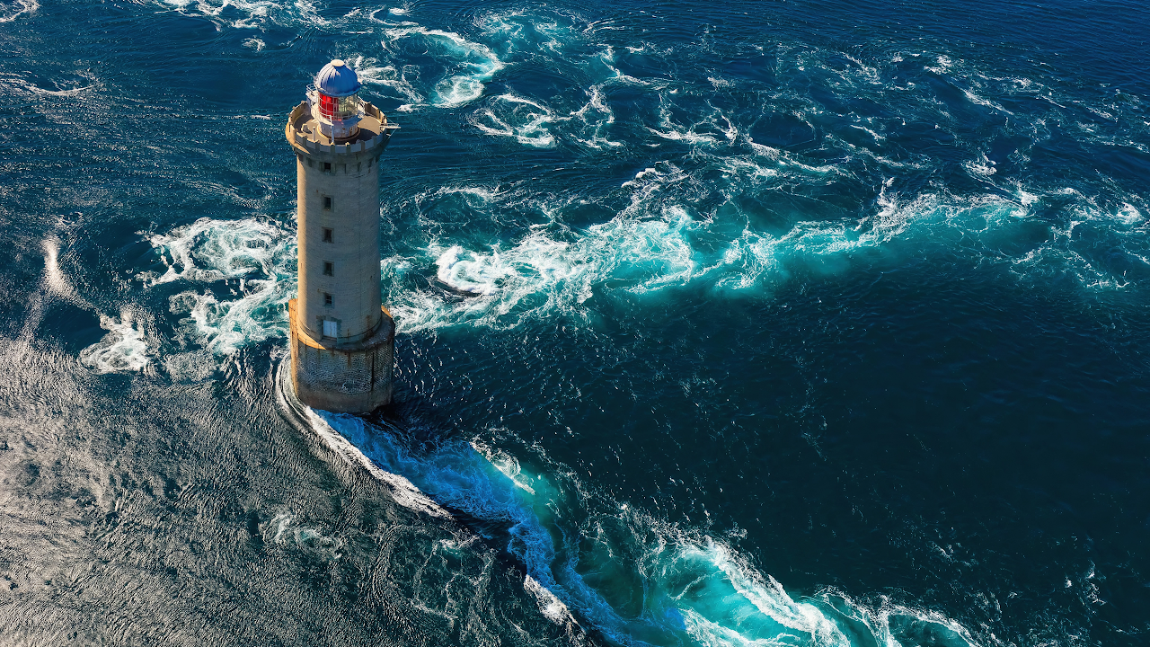 Lighthouse, Ocean, Seascape, Aerial Photography 4K Desktop and Mobile Wallpaper Background with a maximum resolution of 3840x2560 px.