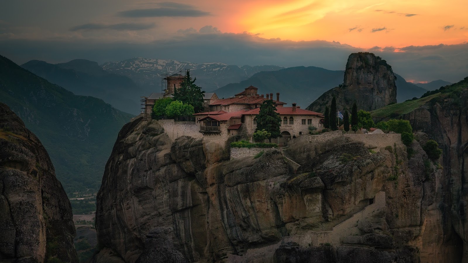 Meteora, Greece, Monastery, Cliffside 5K PC Wallpaper