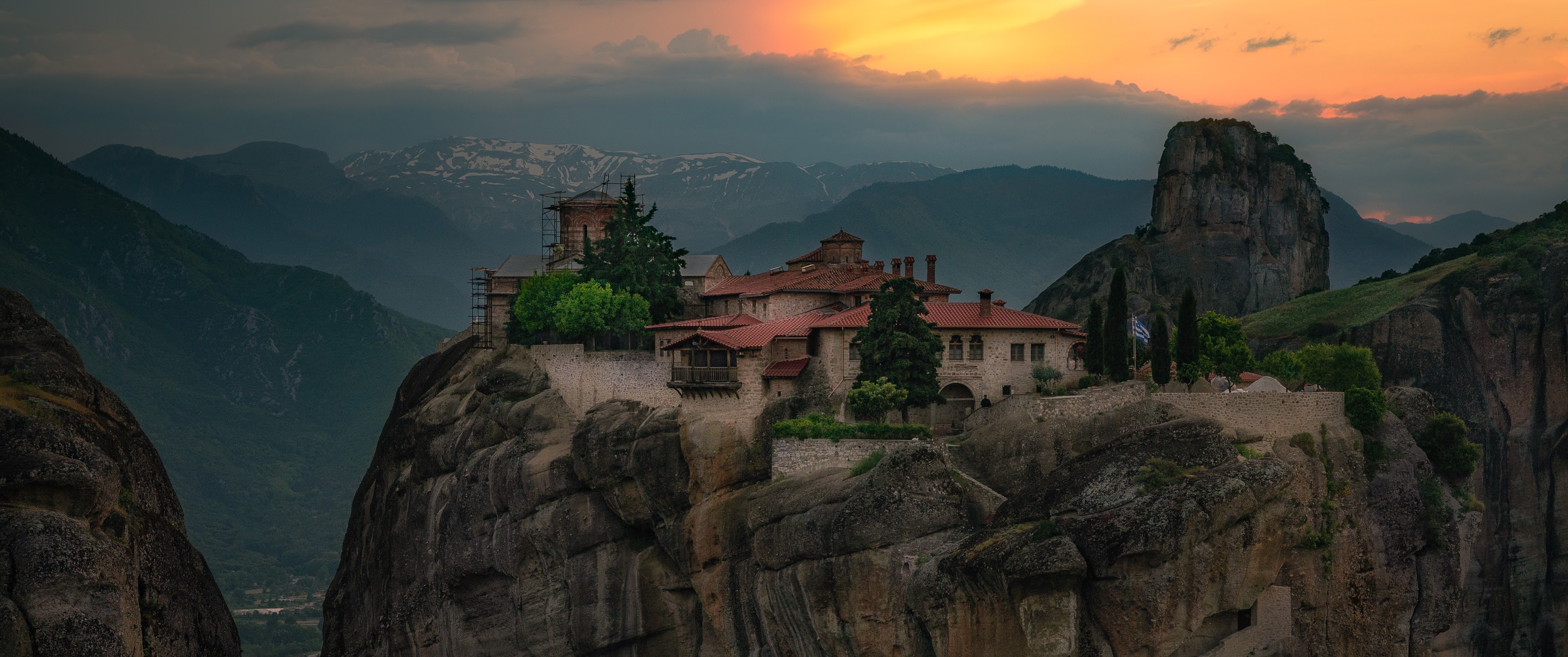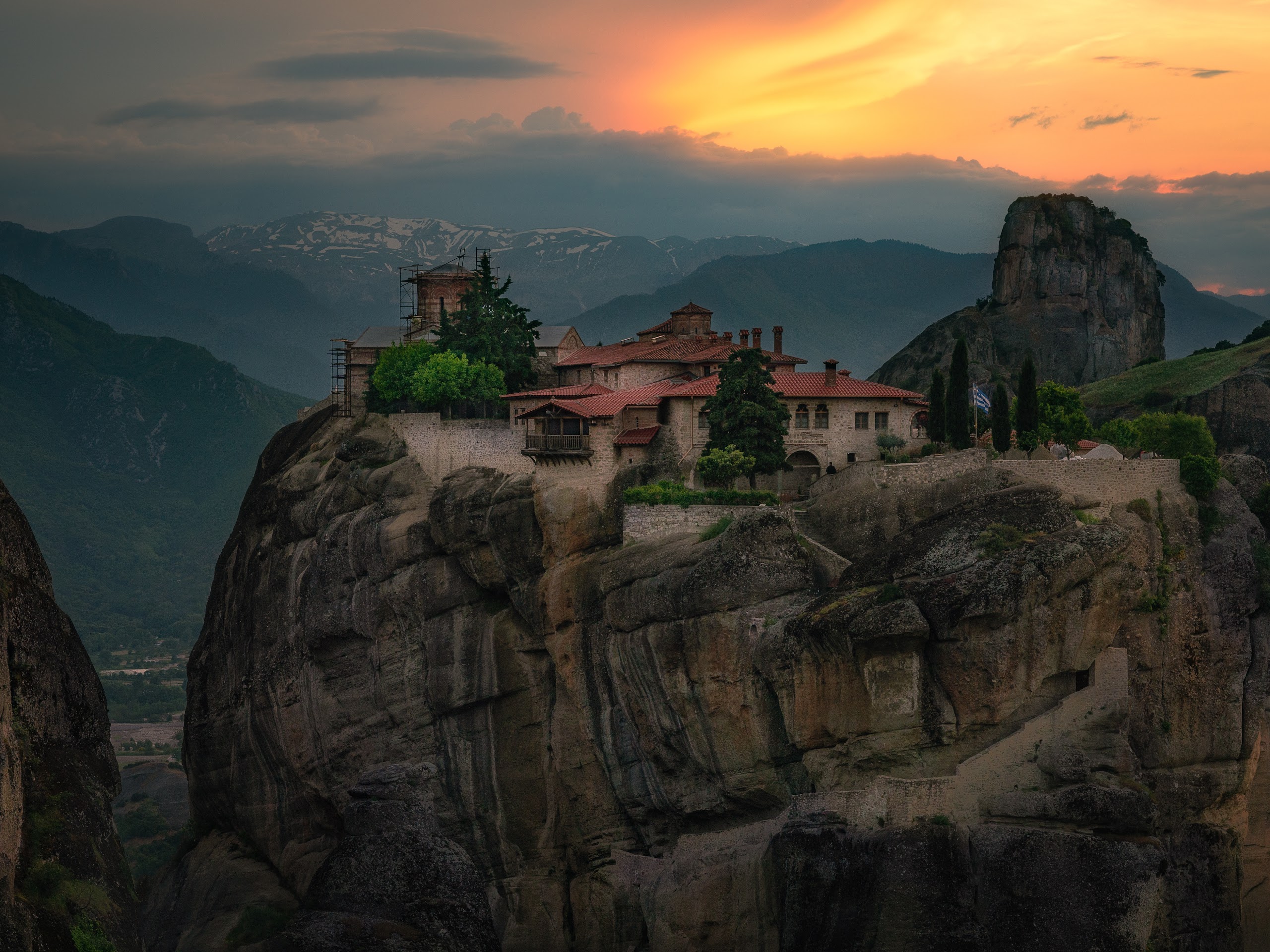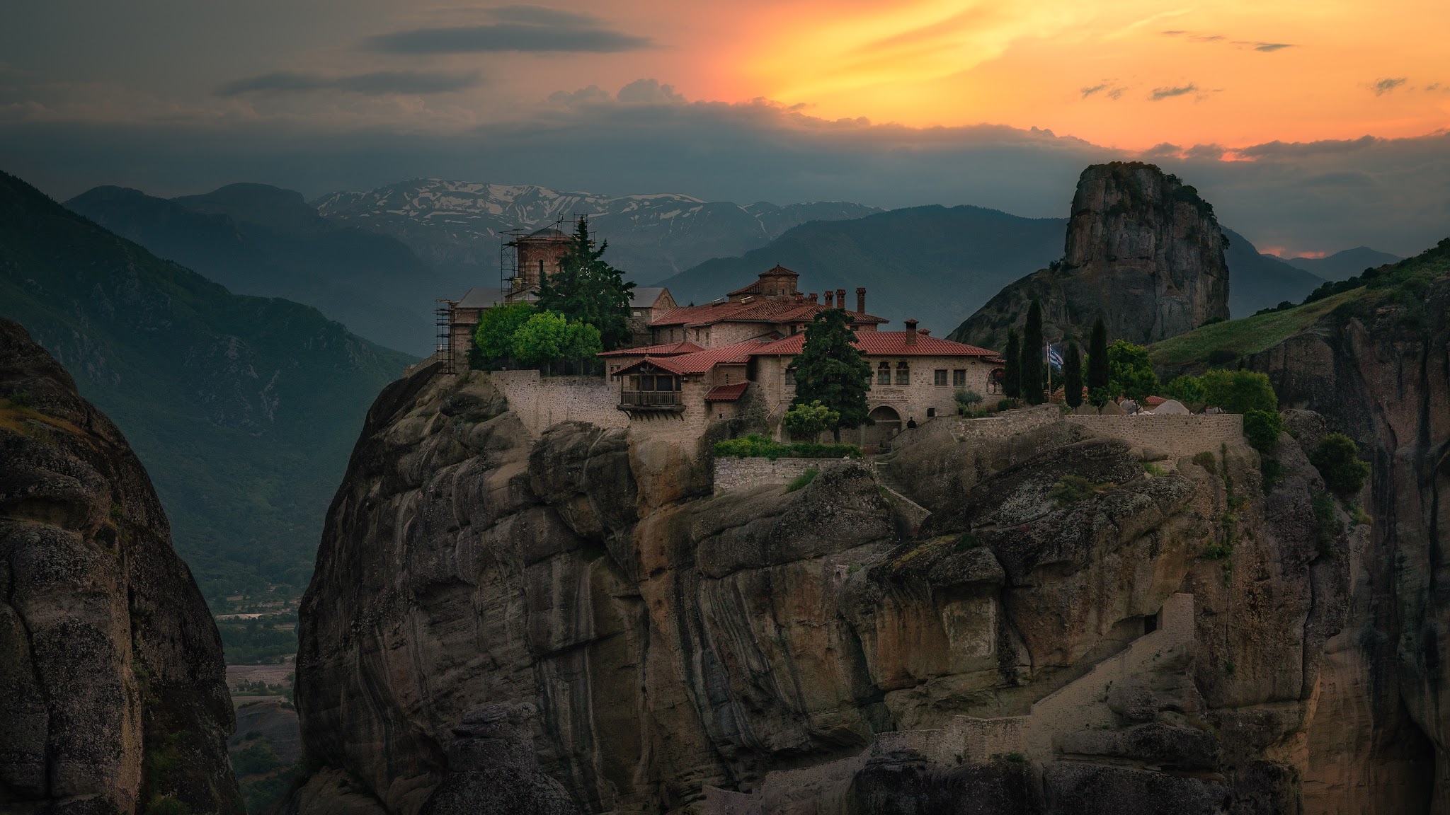 Meteora, Greece, Monastery, Cliffside 5K Desktop Wallpaper