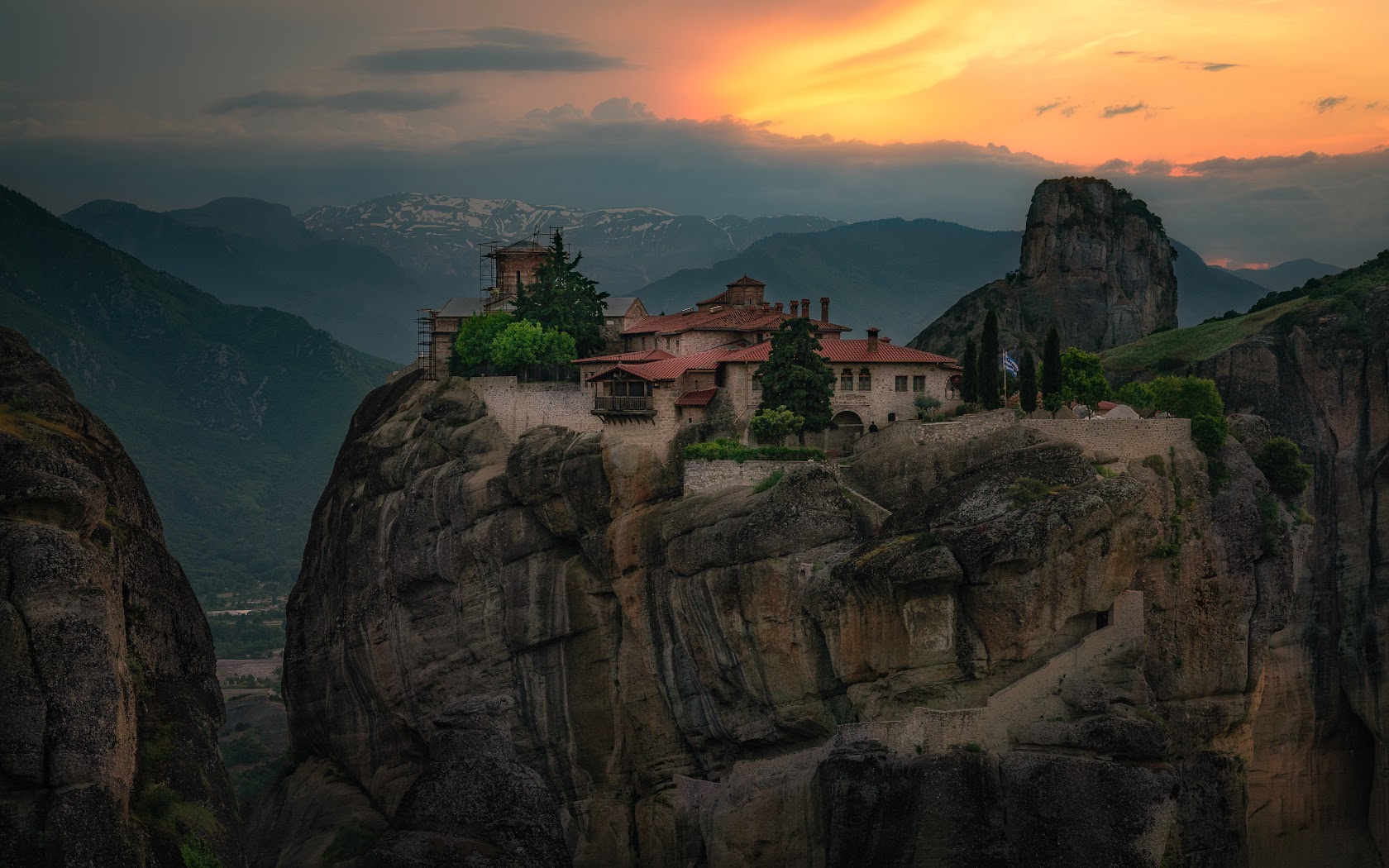 Meteora, Greece, Monastery, Cliffside 5K Phone Wallpaper