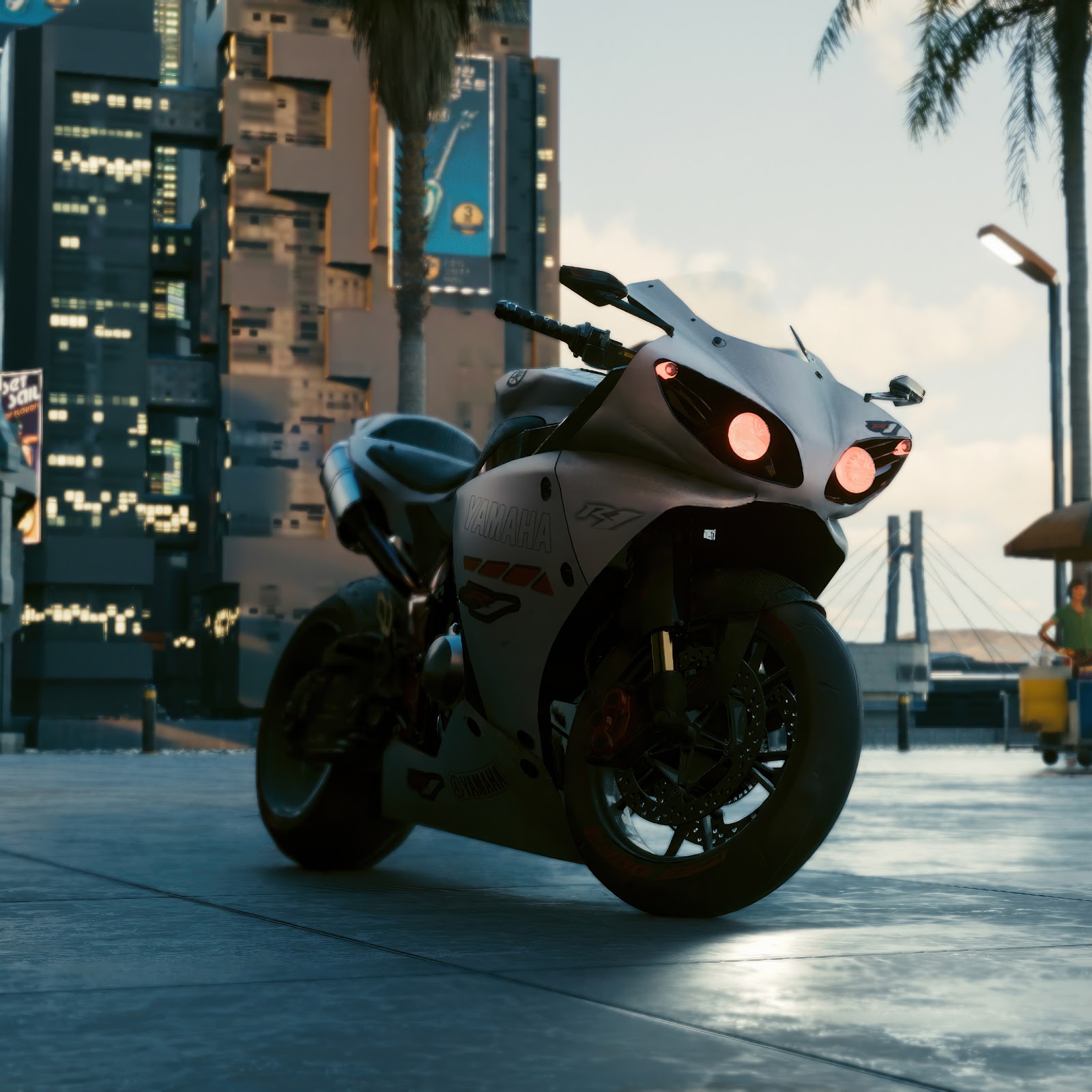 Motorcycle, Yamaha, Futuristic City, Cyberpunk 4K Desktop Wallpaper