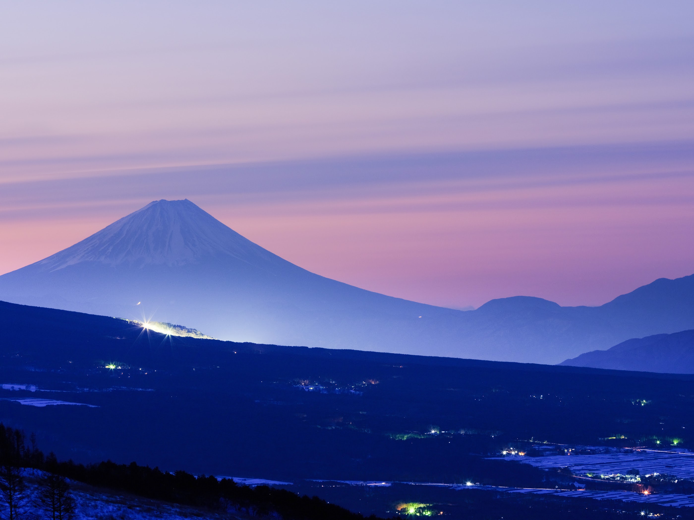 Mount Fuji, Japan, Landscape, Dusk 5K Desktop and Mobile Wallpaper Background with a maximum resolution of 5120x2880 px.