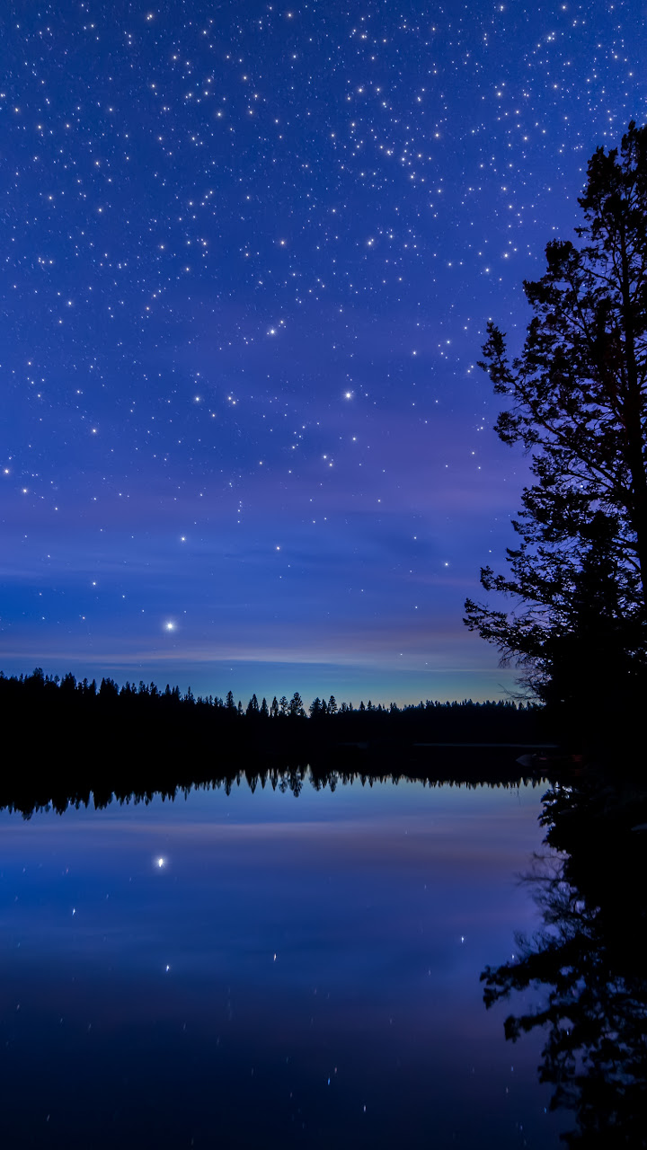 Night Sky, Starry Night, Lake, Nature Photography 4K Desktop and Mobile Wallpaper Background with a maximum resolution of 3840x2509 px.