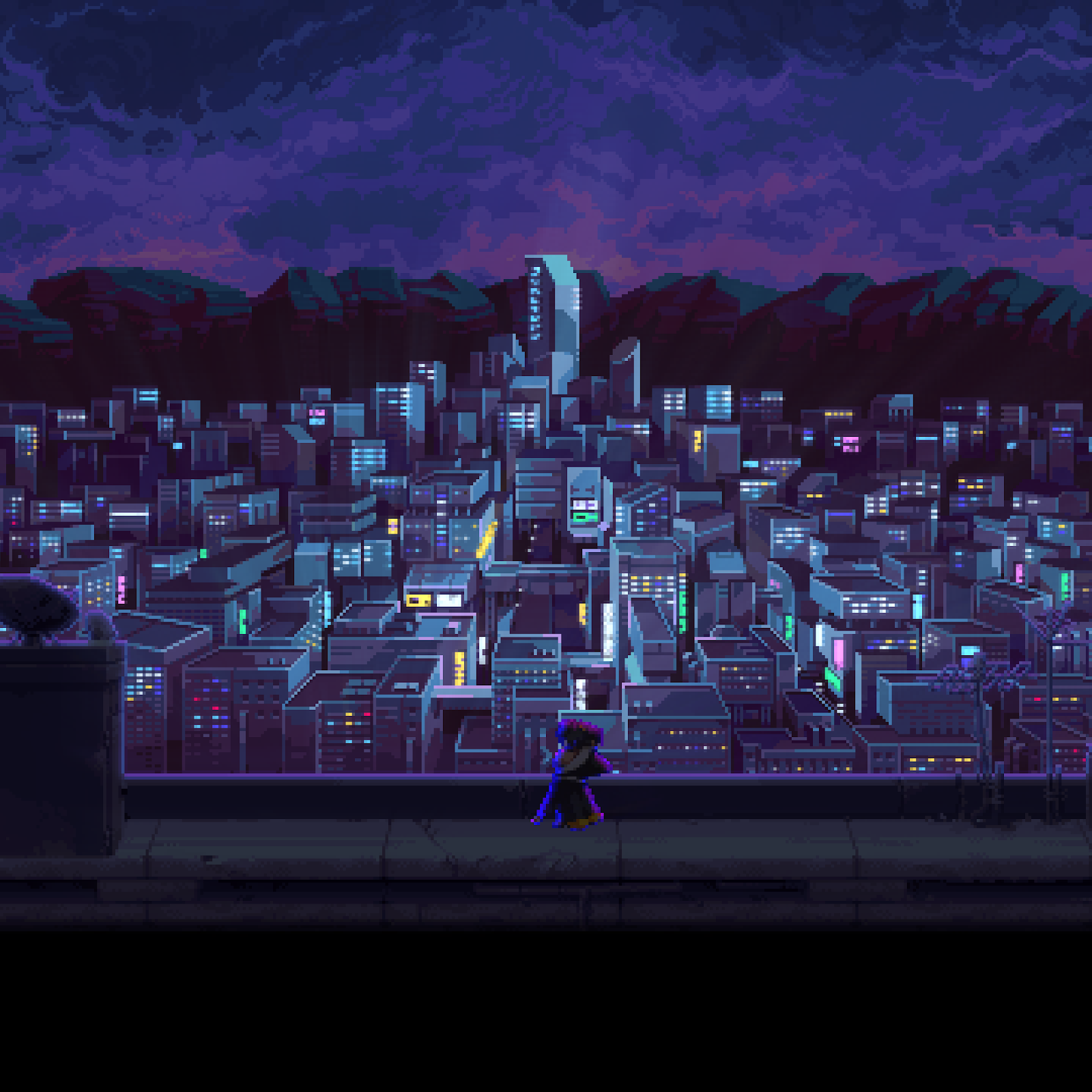 Pixel Art, Cyberpunk City, Night Cityscape, 8-Bit Art 4K Desktop and Mobile Wallpaper Background with a maximum resolution of 3840x2160 px.