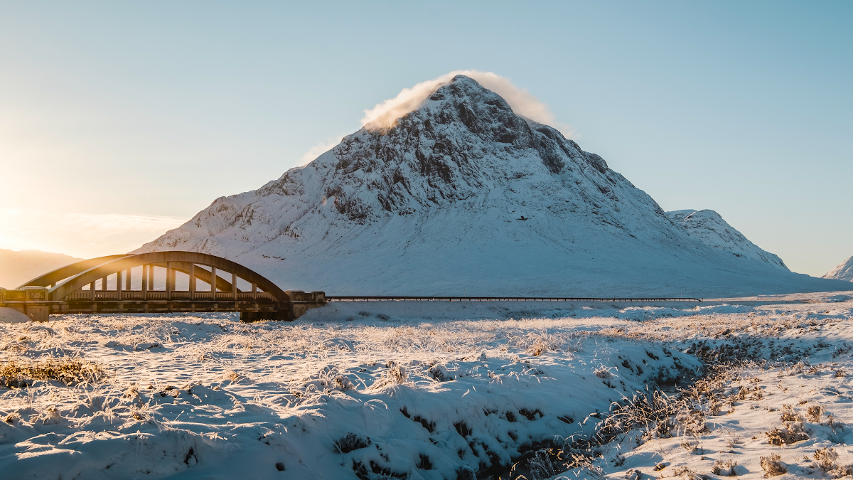 Scotland, Snow, Mountain, Bridge 4K Desktop and Mobile Wallpaper Background with a maximum resolution of 3840x2160 px.