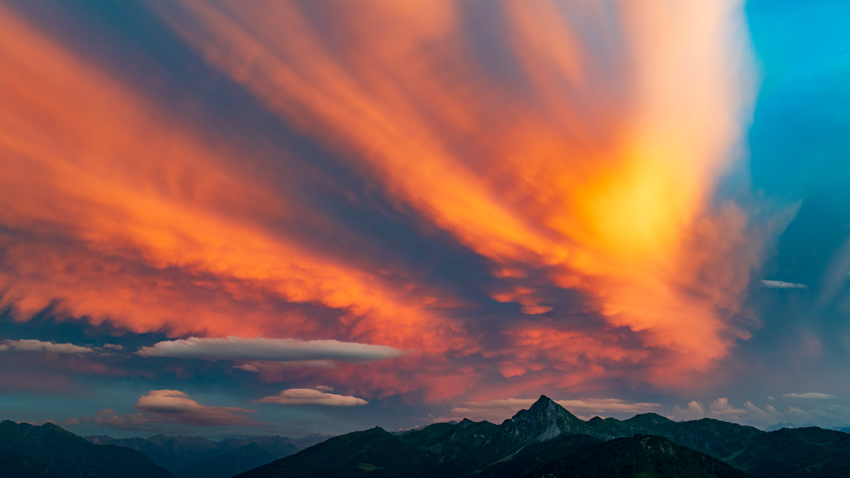Sunset, Mountain, Clouds, Orange Sky 4K Desktop Wallpaper