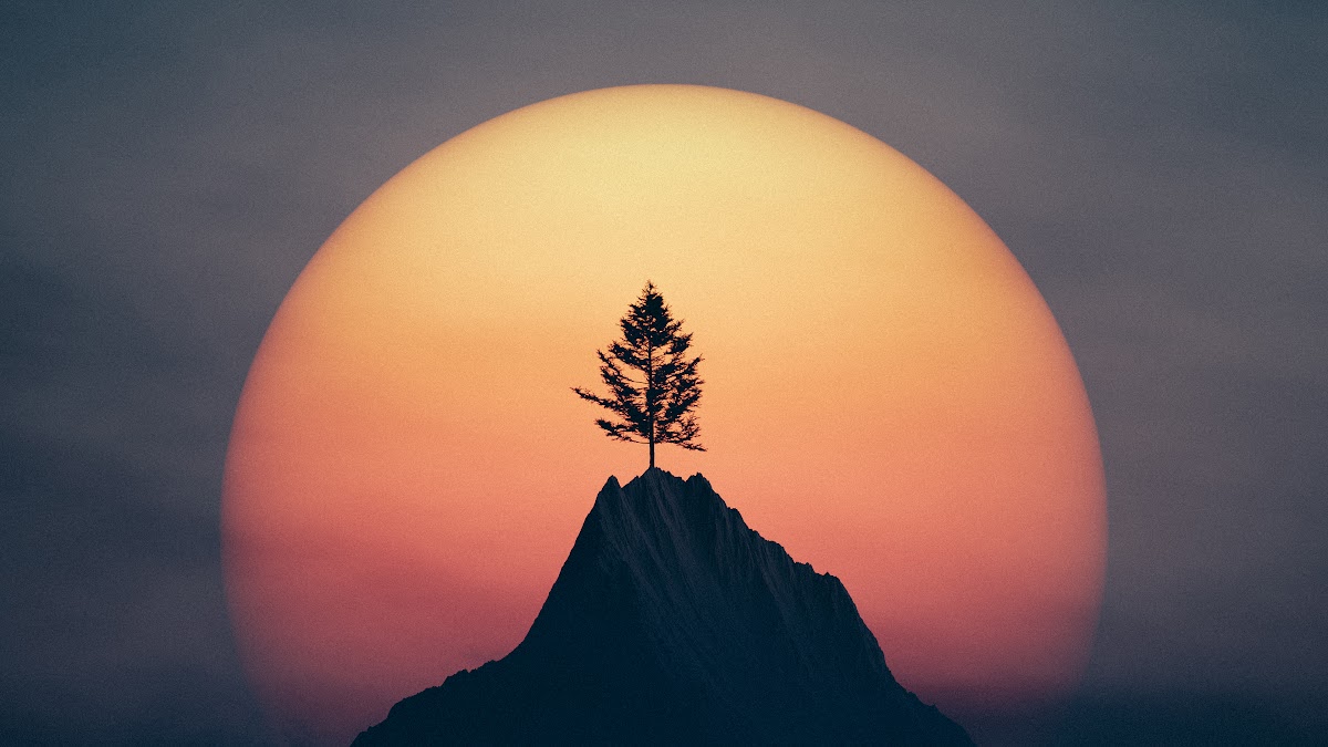 Sunset, Mountain, Tree, Silhouette 4K Desktop and Mobile Wallpaper Background with a maximum resolution of 3840x2160 px.