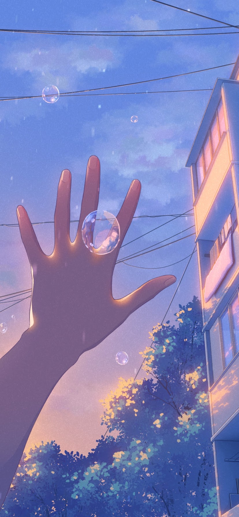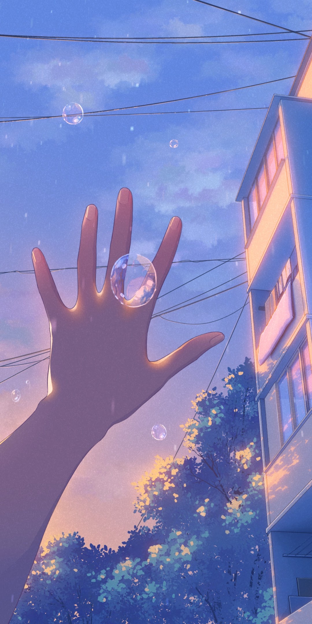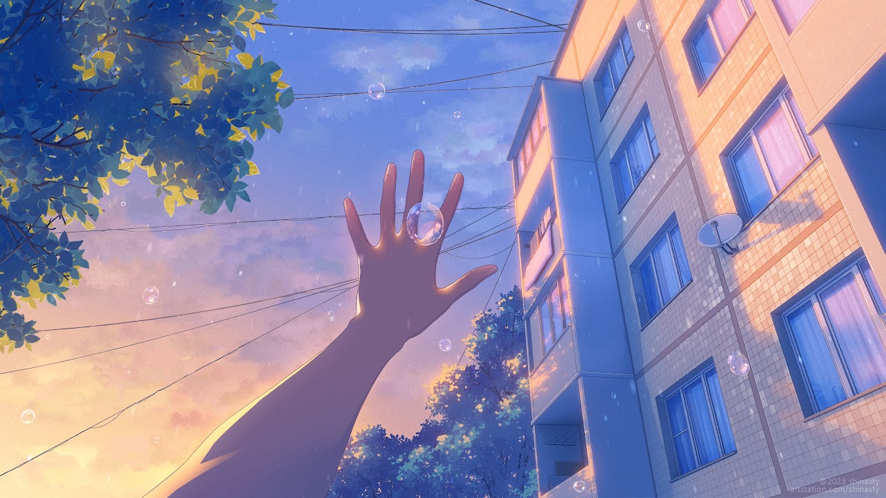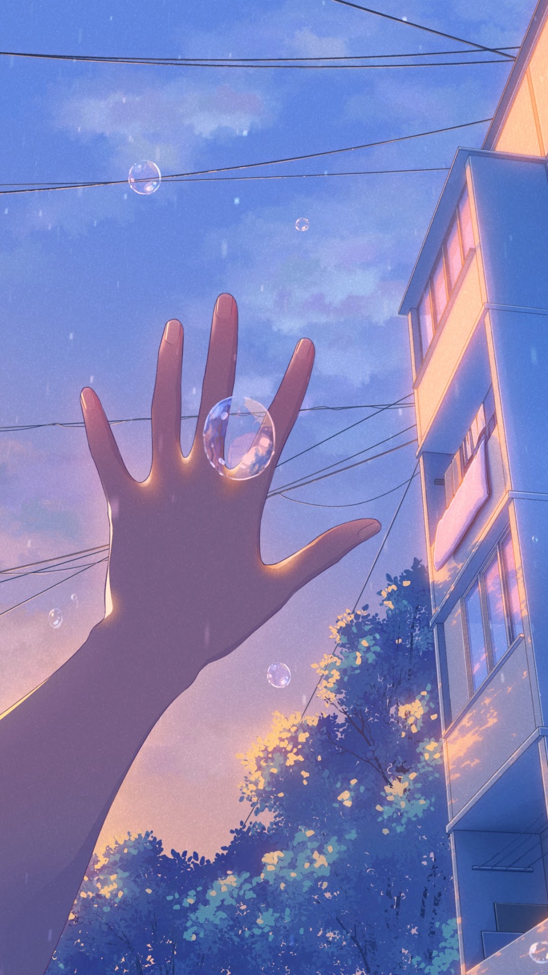 Anime, Cityscape, Sunset, Bubbles 4K Desktop and Mobile Wallpaper Background with a maximum resolution of 3840x2160 px.