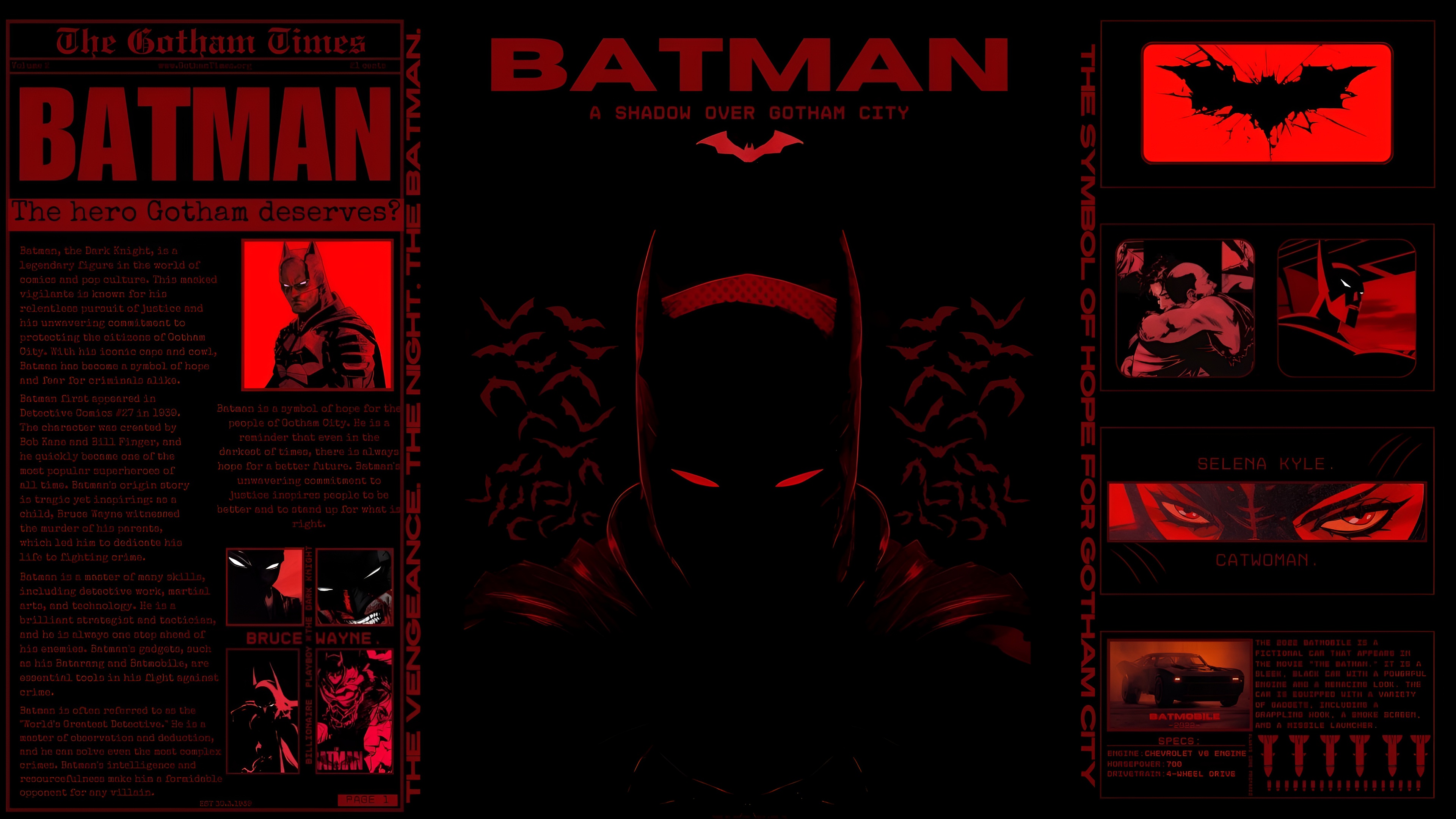 Batman, Superhero, Comic, Gotham City 4K Desktop and Mobile Wallpaper Background with a maximum resolution of 3840x2160 px.