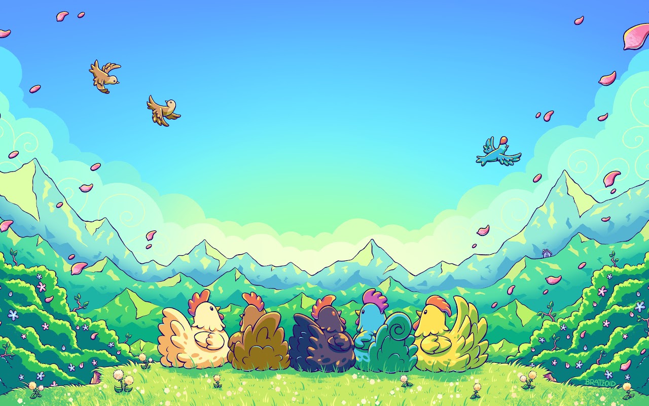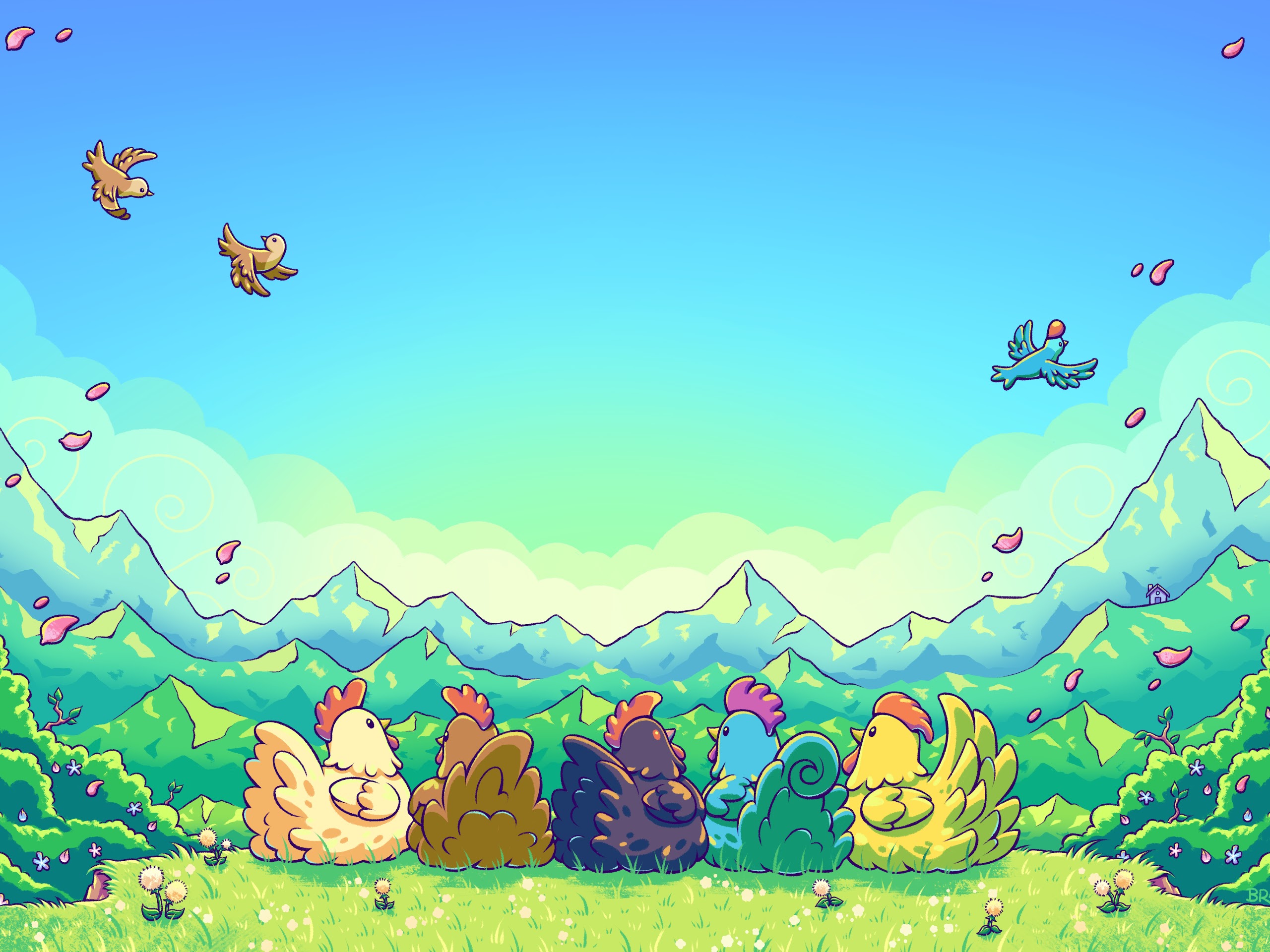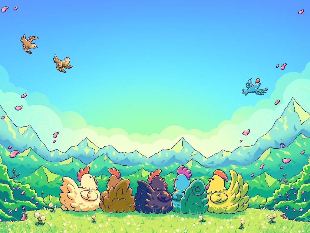 Cartoon Chickens, Mountain Landscape, Spring Season, Cute Animals 4K Desktop Wallpaper