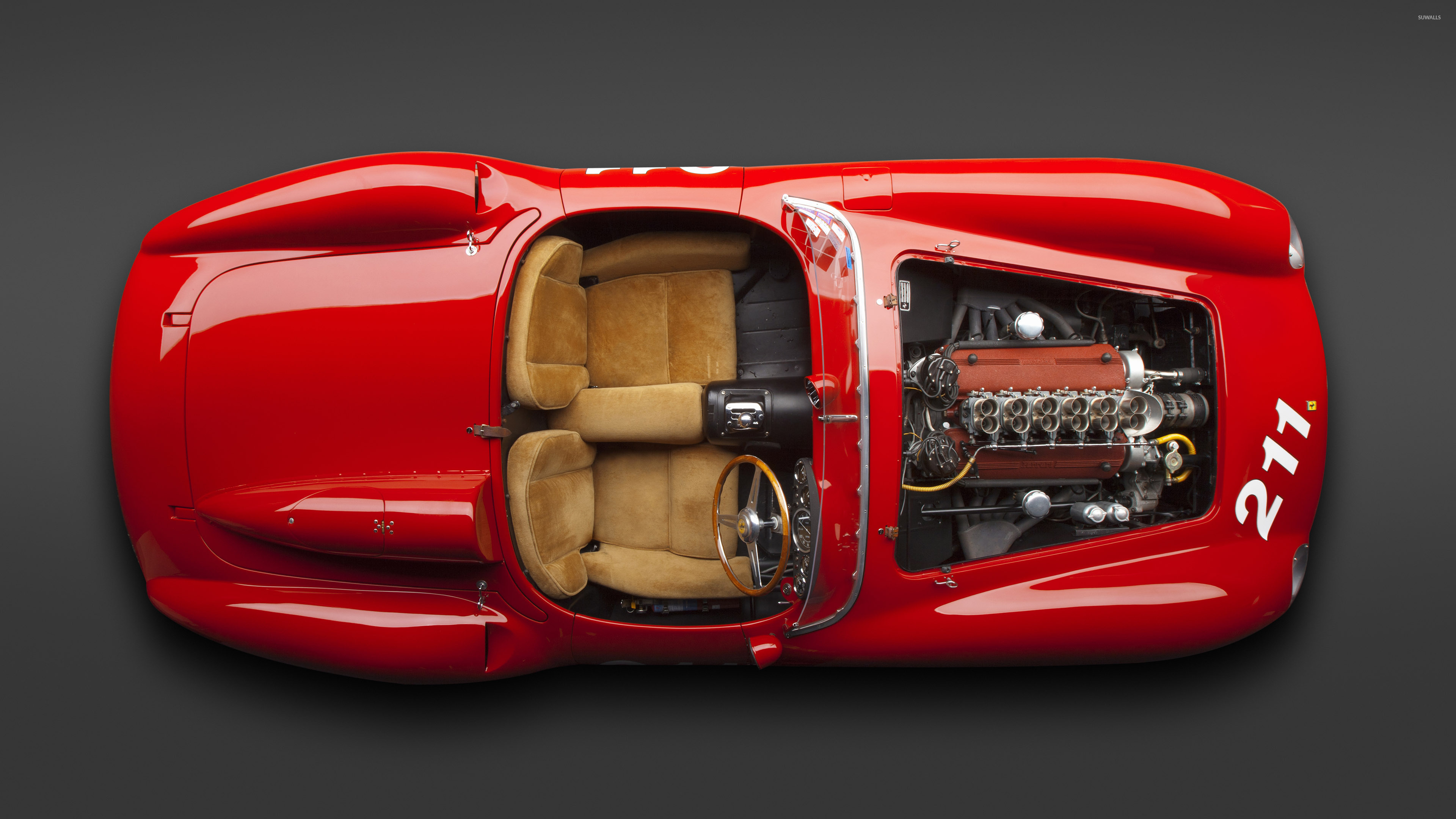 Classic Car, Vintage Vehicle, Red Automobile, Engine Detail 4K Desktop and Mobile Wallpaper Background with a maximum resolution of 3840x2160 px.