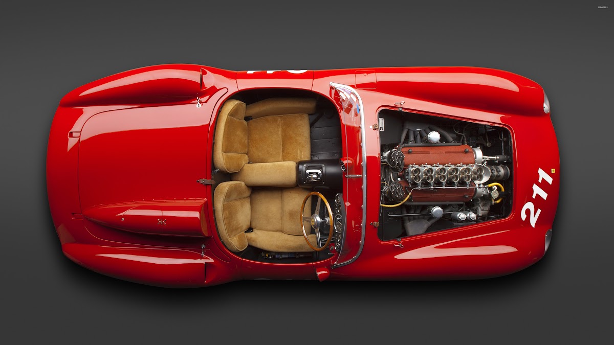 Classic Car, Vintage Vehicle, Red Automobile, Engine Detail 4K Wallpaper Background (3840x2160)