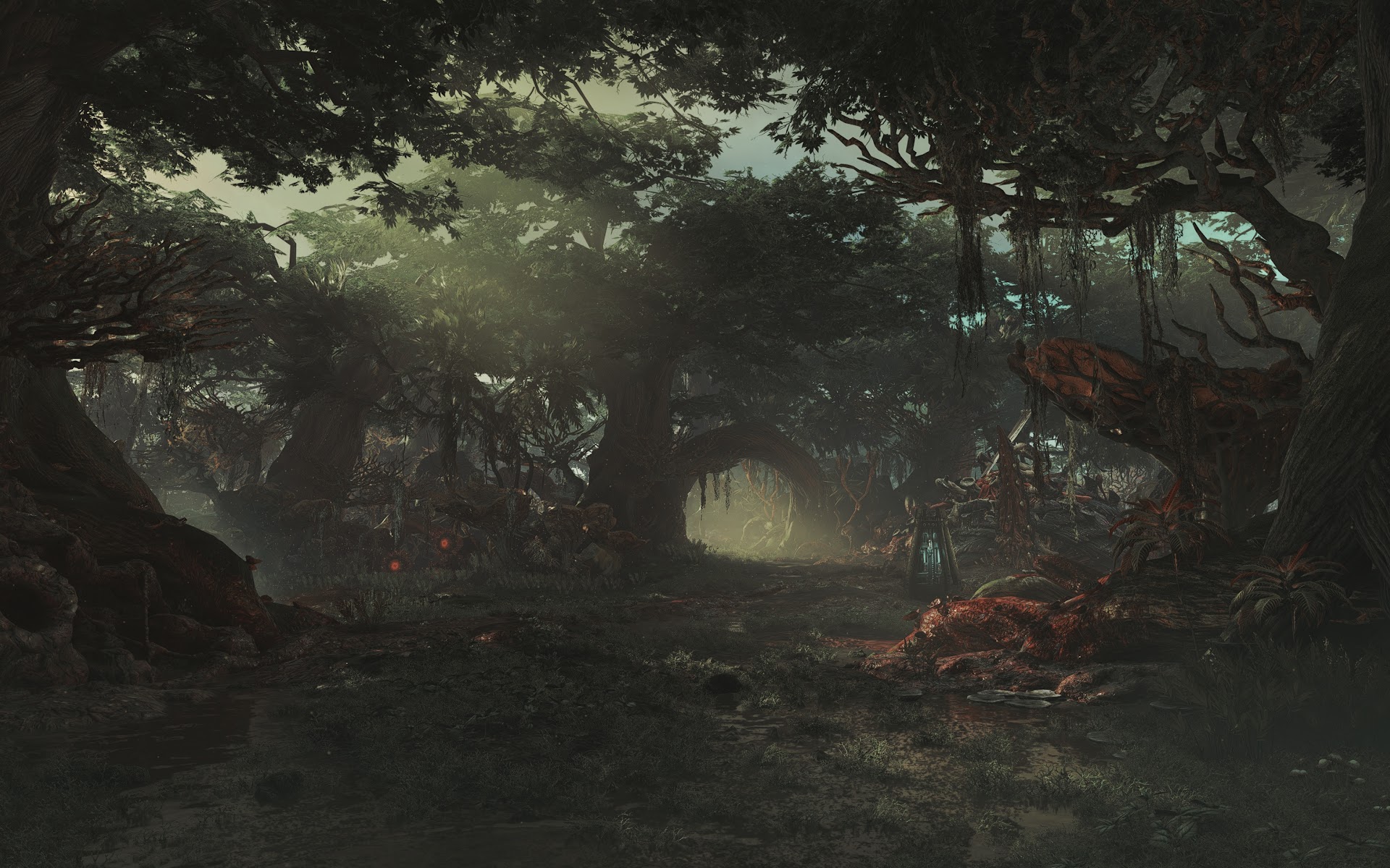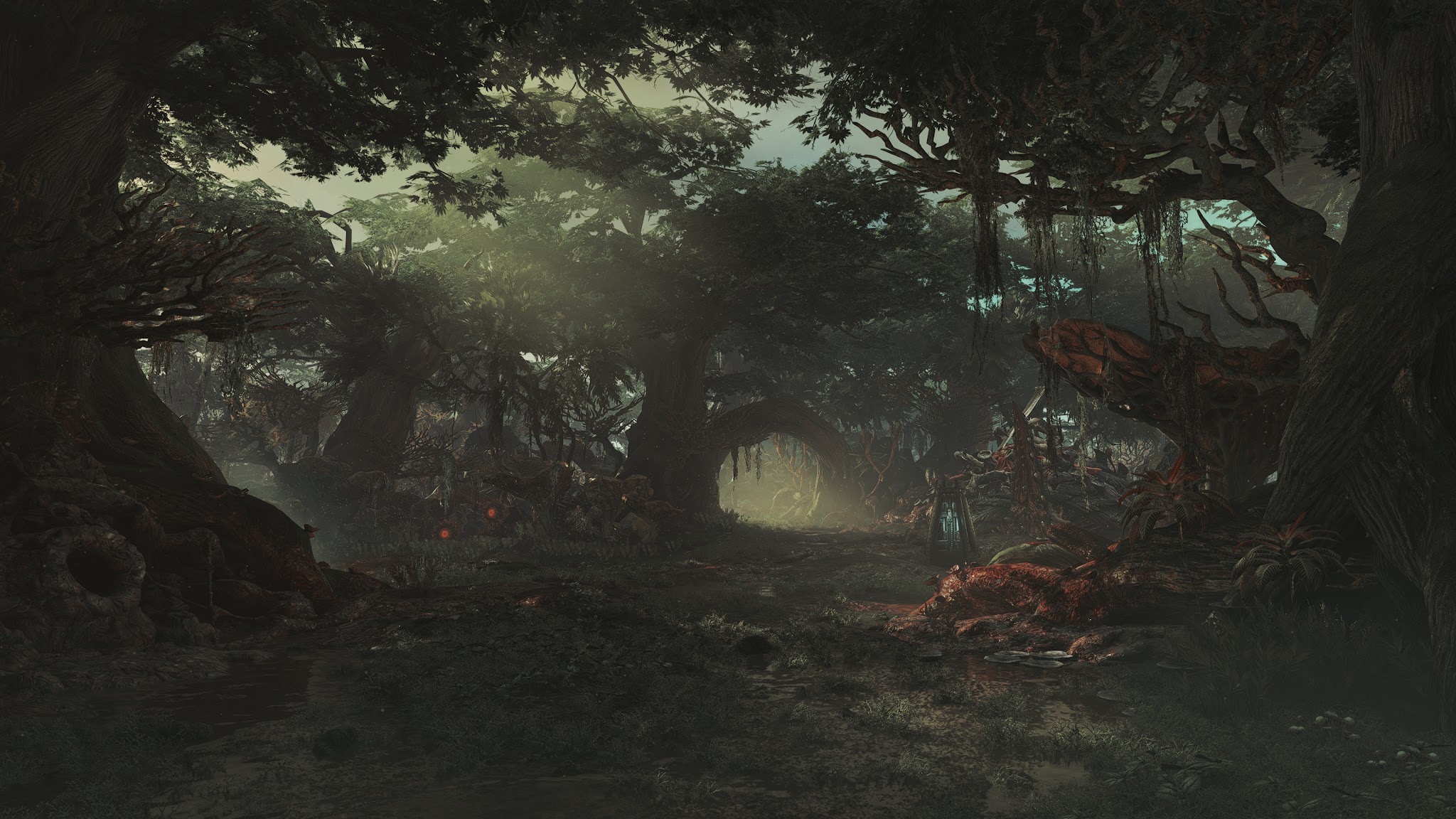 Dark Forest, Spooky Woods, Mystical Path, Fantasy Landscape 4K Wallpaper Background (3840x2160)