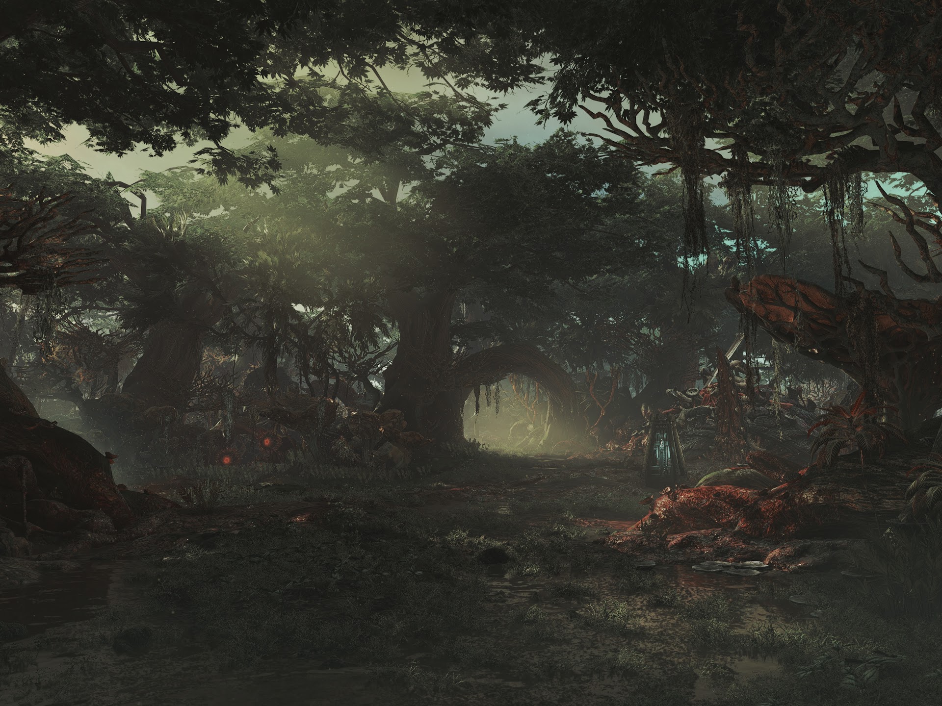 Dark Forest, Spooky Woods, Mystical Path, Fantasy Landscape 4K Desktop Wallpaper