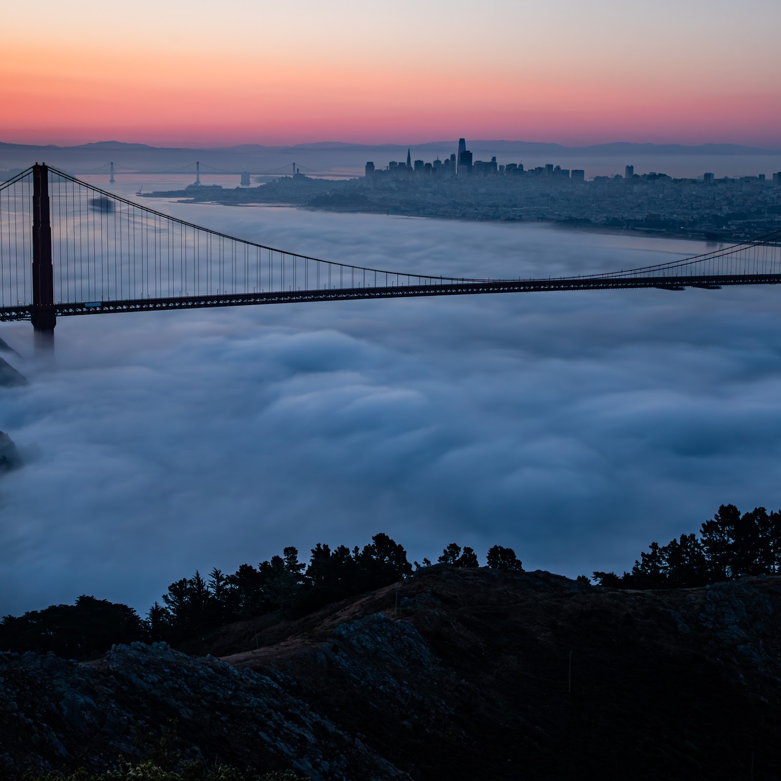 Golden Gate Bridge, San Francisco, Fog, Sunrise 5K Desktop Wallpaper