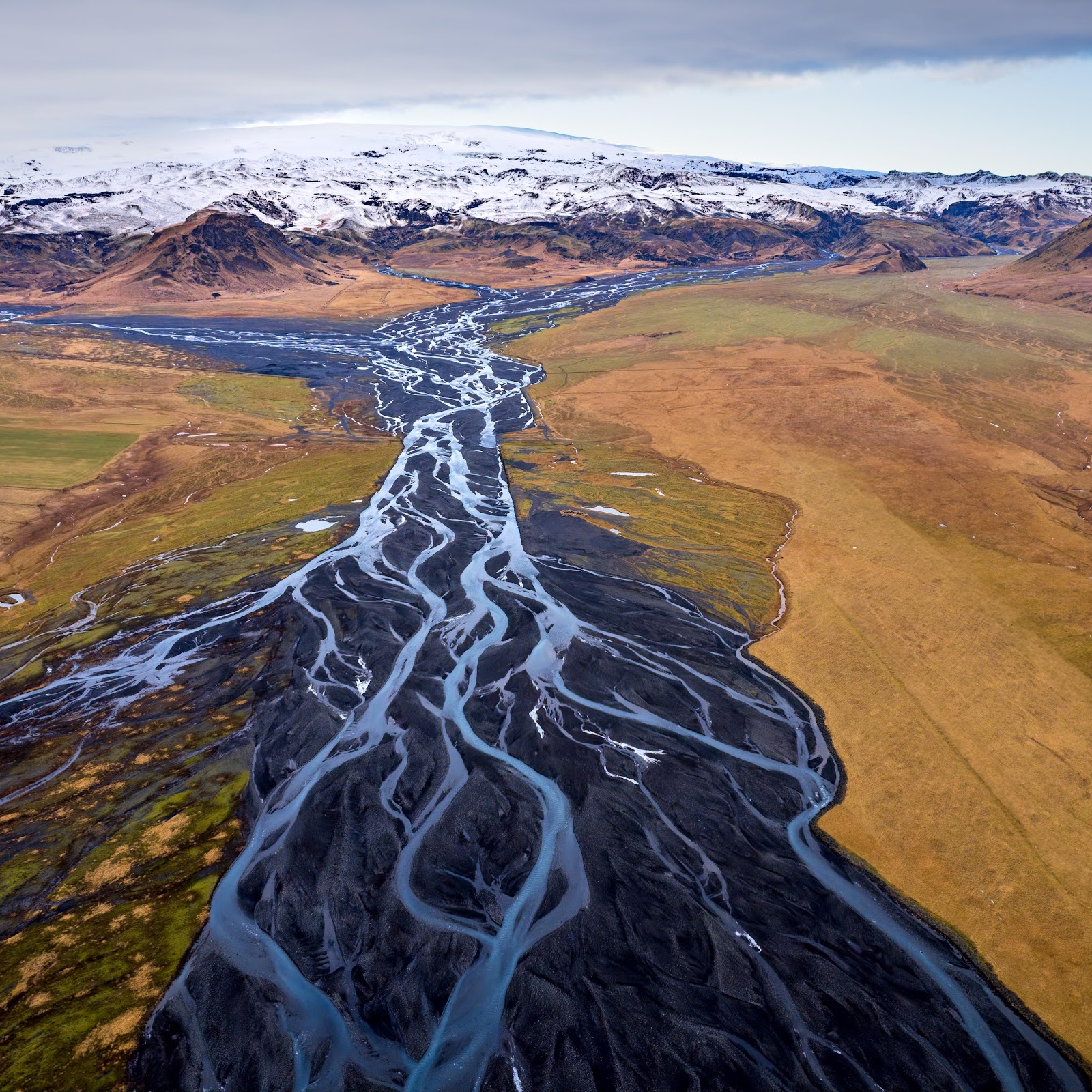 Iceland Landscape, Aerial View, Braided River, Glacial River 5K Desktop Wallpaper