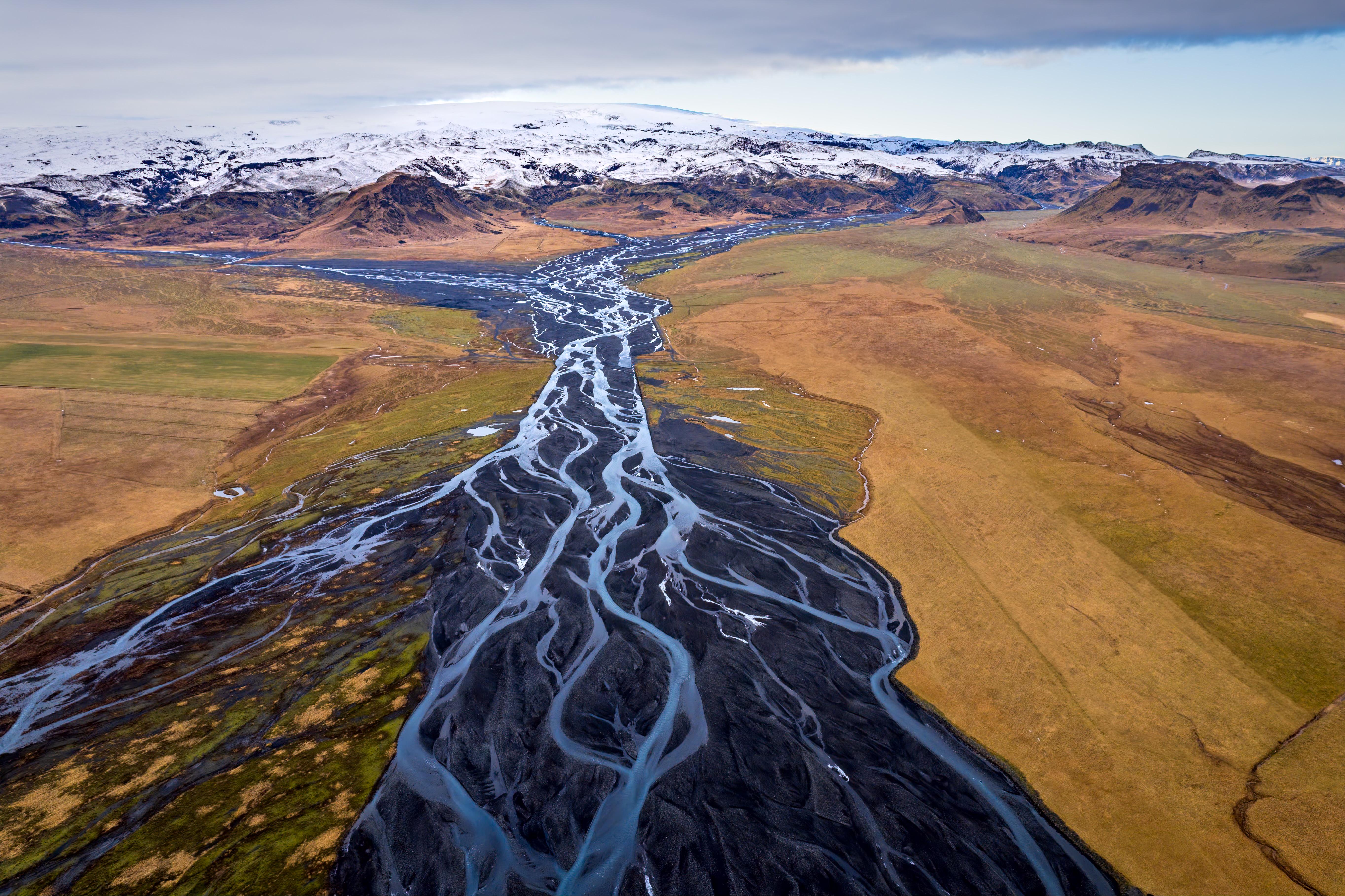 Iceland Landscape, Aerial View, Braided River, Glacial River 5K PC Wallpaper