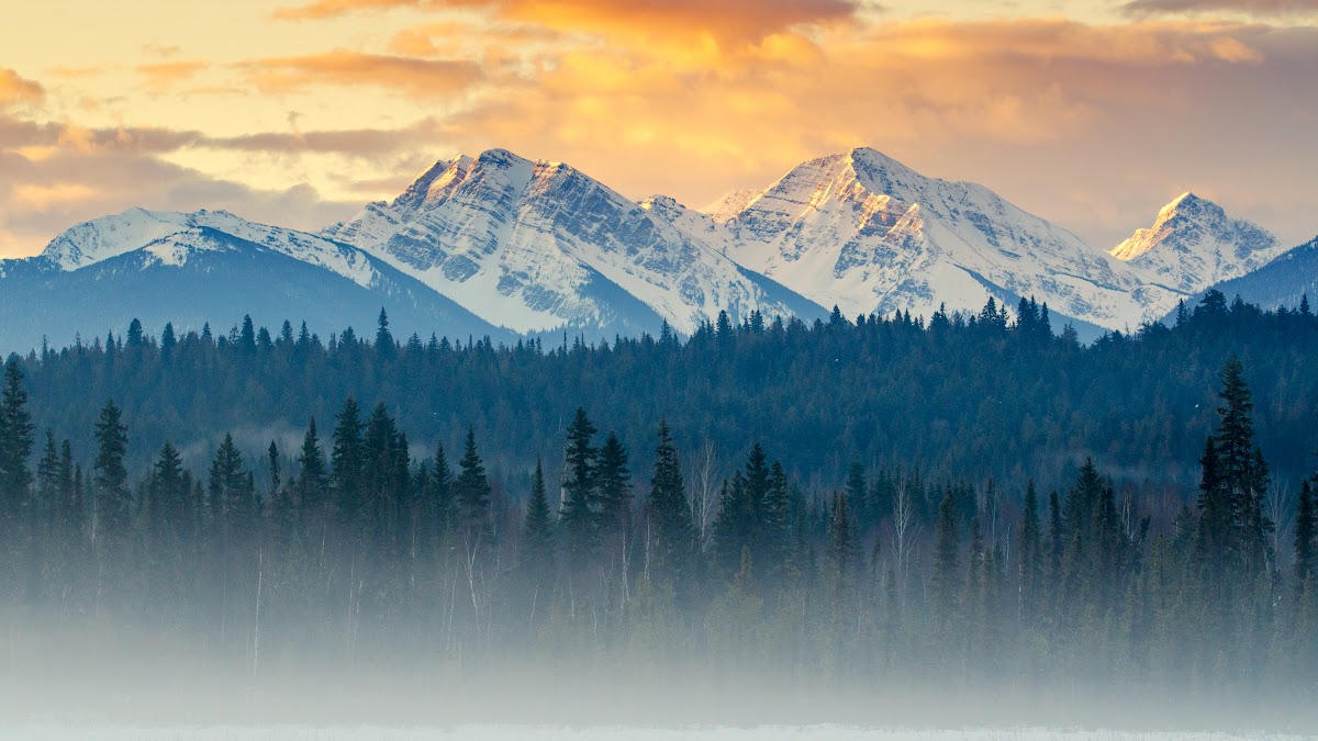 Mountain Landscape, Winter Mountains, Snow Capped Peaks, Coniferous Forest 4K Desktop Wallpaper