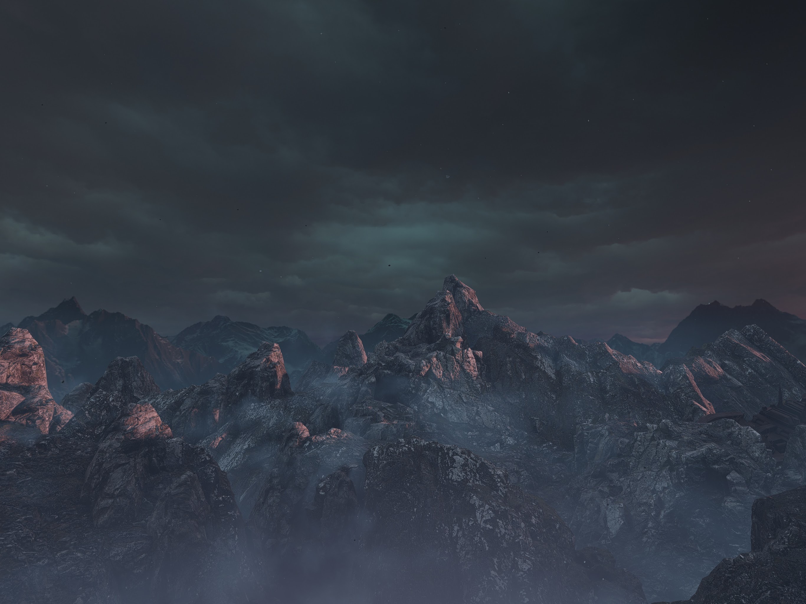 Mountain Range, Dark Fantasy, Landscape, Digital Art 4K PC Wallpaper