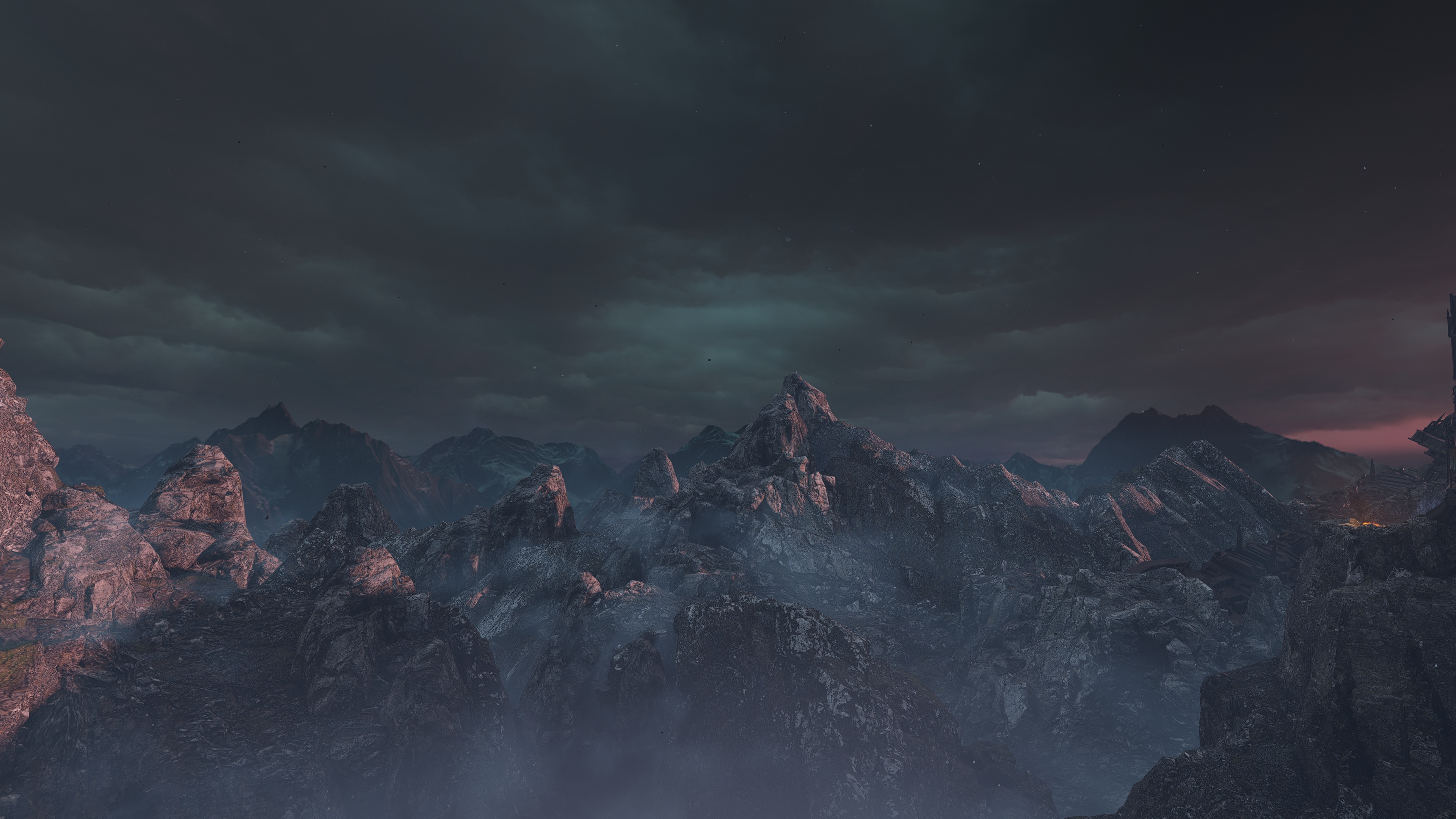 Mountain Range, Dark Fantasy, Landscape, Digital Art 4K Desktop and Mobile Wallpaper Background with a maximum resolution of 3840x2160 px.