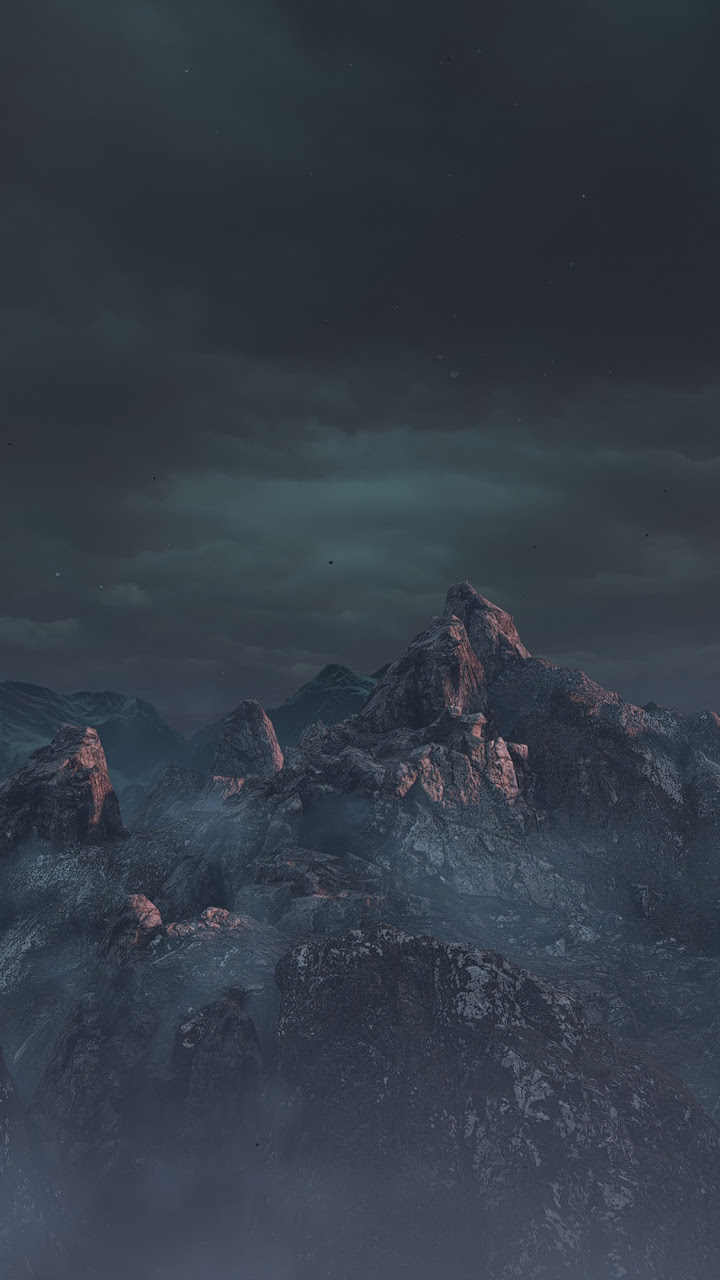 Mountain Range, Dark Fantasy, Landscape, Digital Art 4K Phone Wallpaper