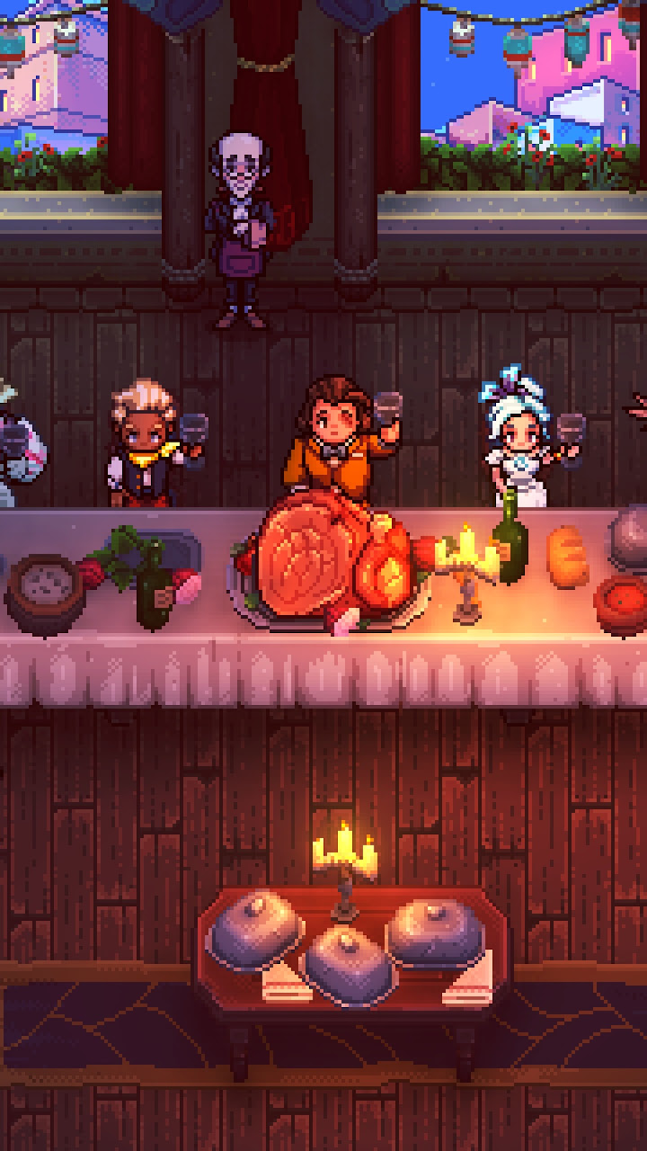 Pixel Art, Dinner Party, Game Art, Fantasy Art 4K Desktop and Mobile Wallpaper Background with a maximum resolution of 3840x2160 px.