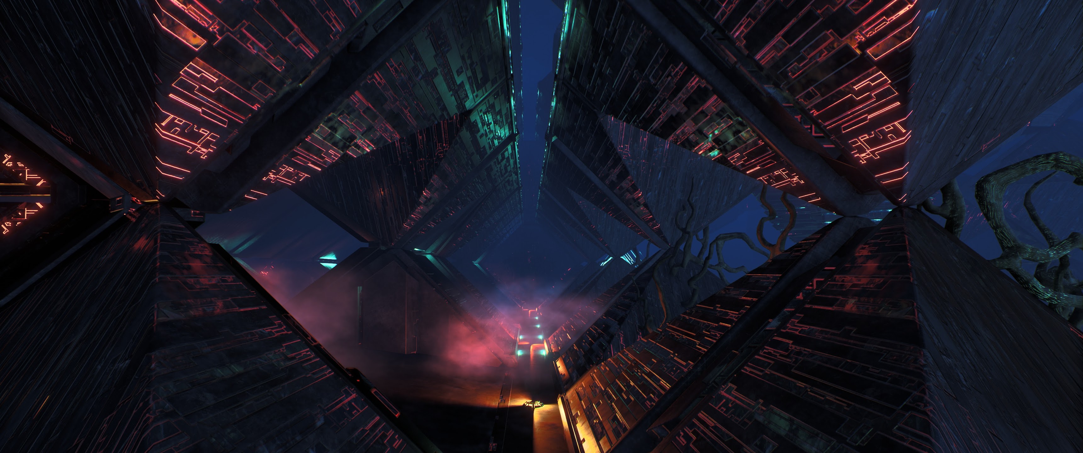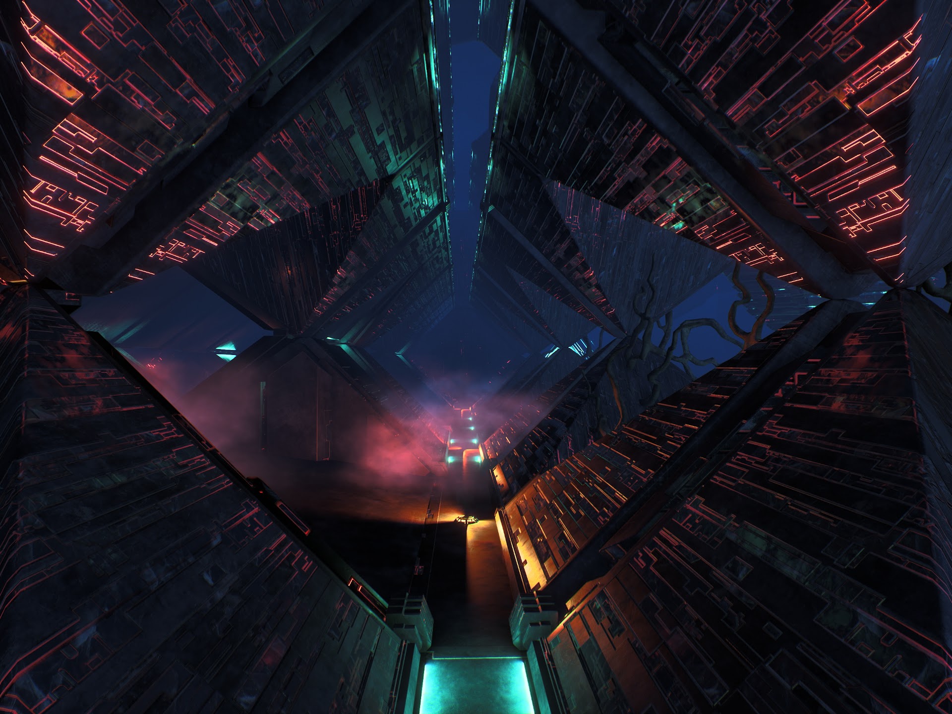 Sci-Fi Architecture, Cyberpunk City, Futuristic Cityscape, Neon Lights 4K Desktop Wallpaper