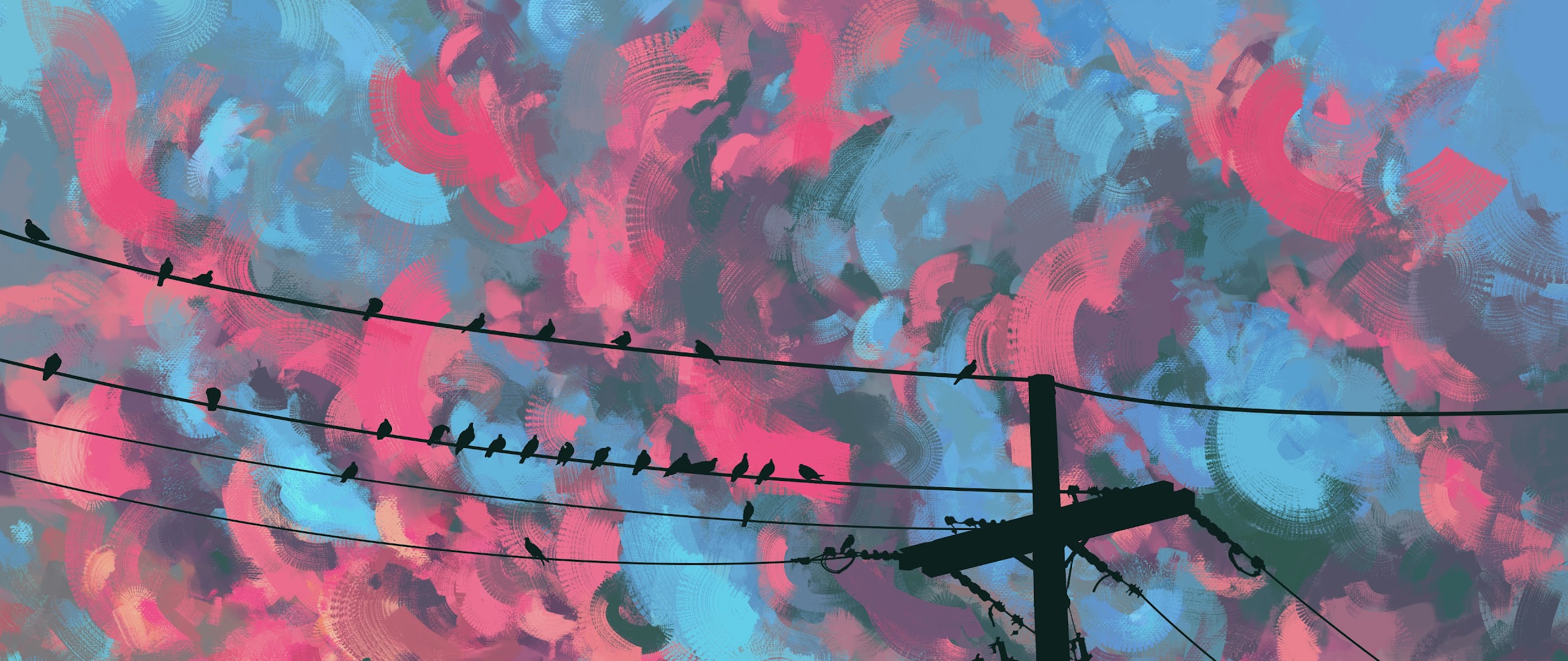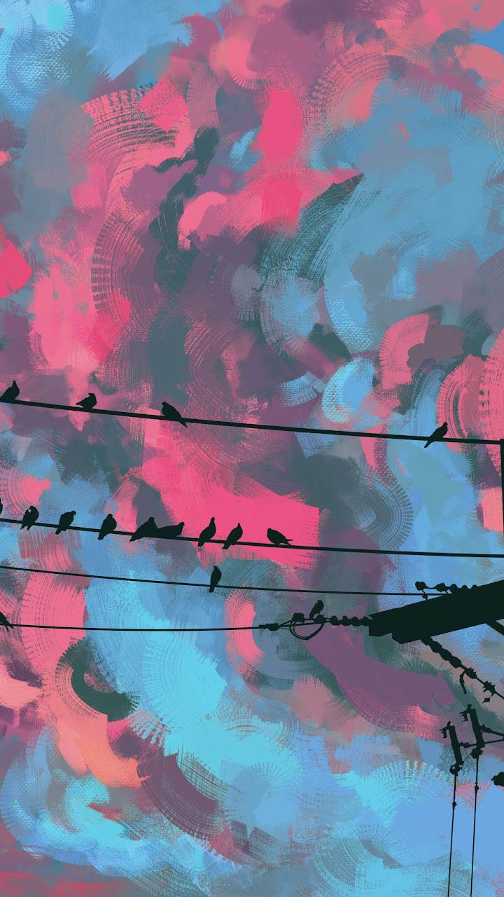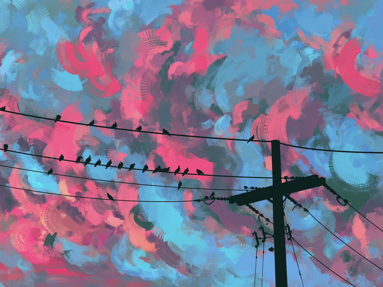 Sky, Birds, Power Lines, Abstract Art 4K Desktop Wallpaper