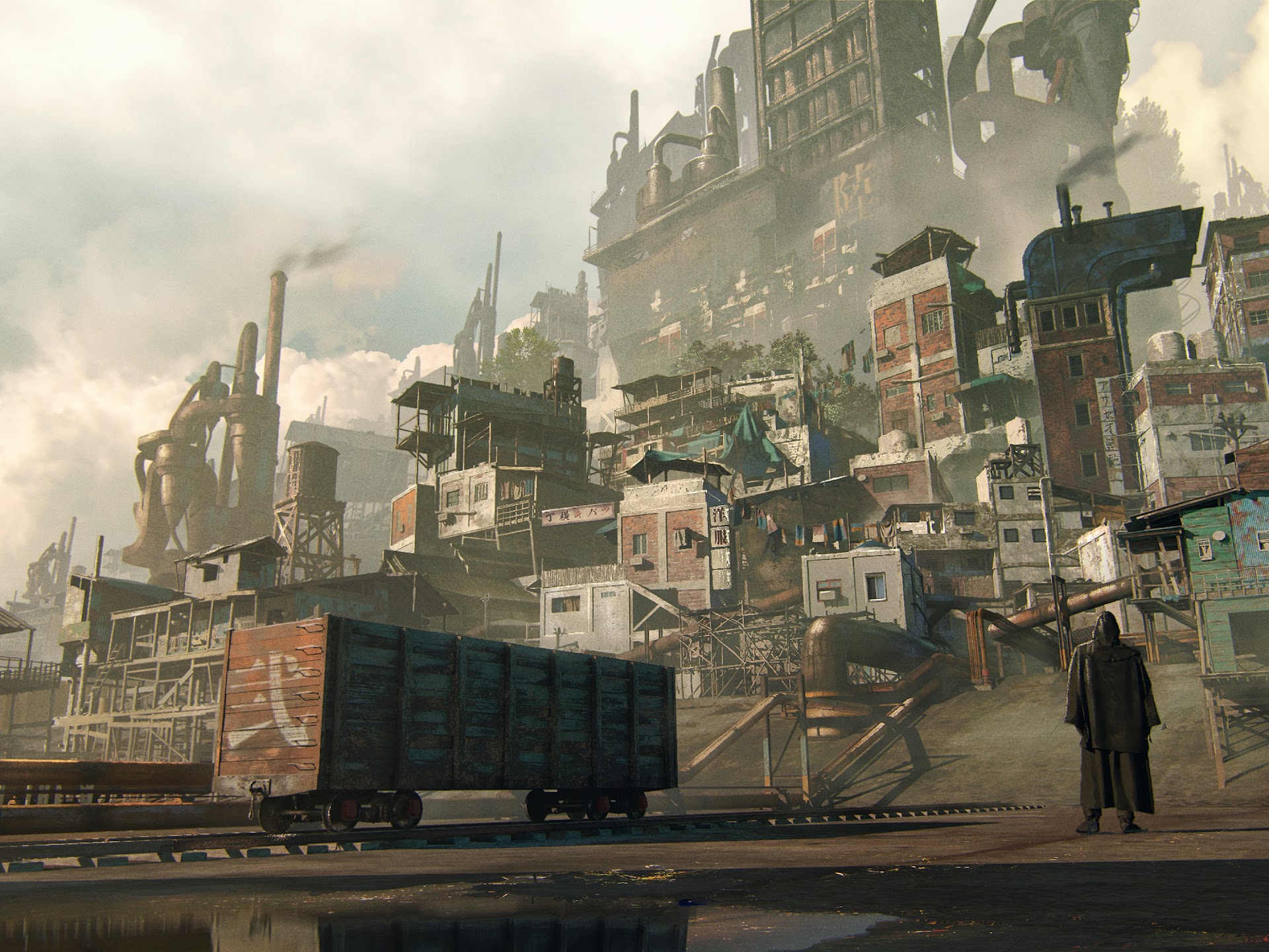 Steampunk, Dystopian, Cityscape, Industrial 4K Desktop and Mobile Wallpaper Background with a maximum resolution of 5076x2160 px.