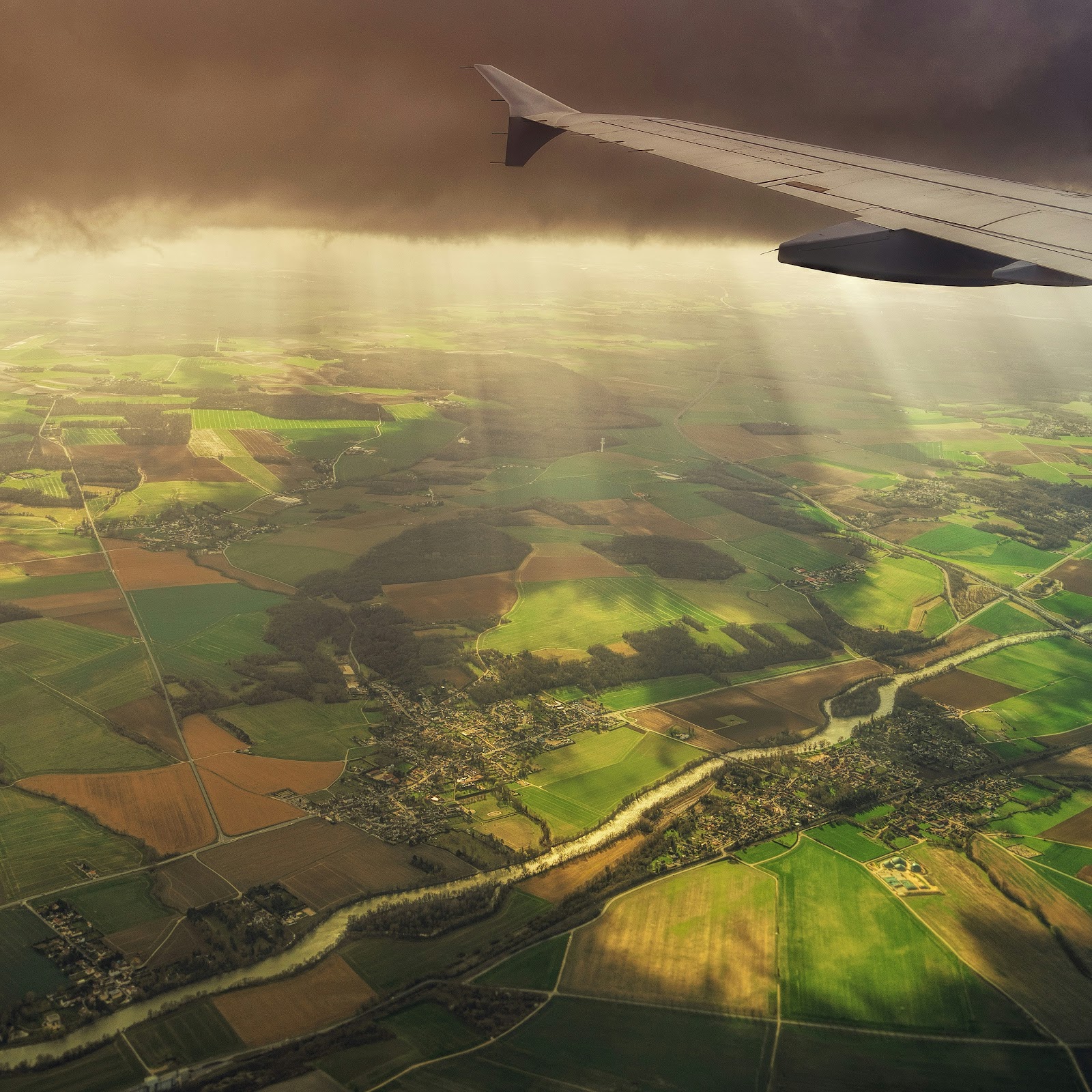 Airplane View, Aerial Landscape, Rural Scenery, Flight Travel 5K Desktop Wallpaper