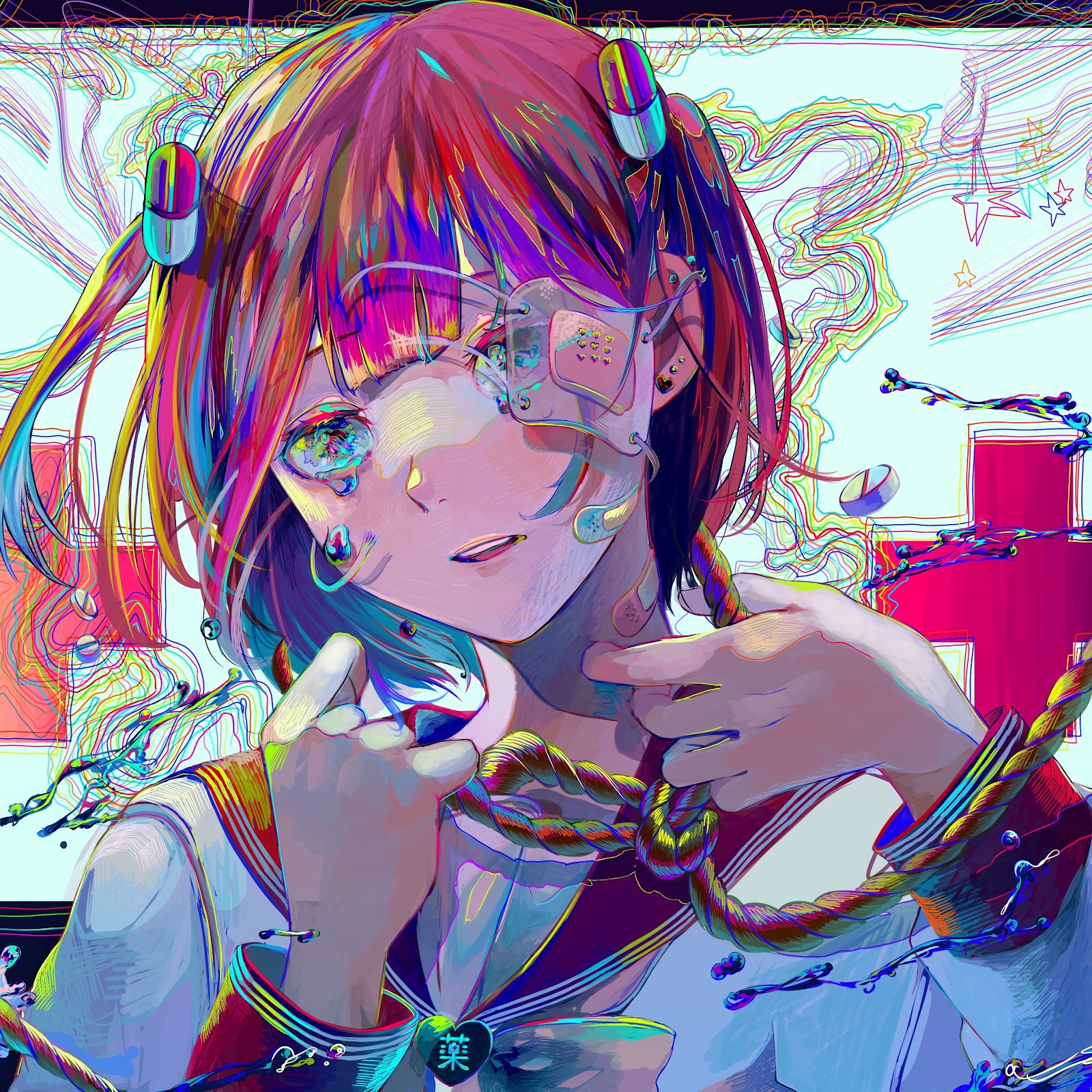 Anime Girl, Digital Art, Vibrant Colors, Medicine Themed 4K Phone Wallpaper