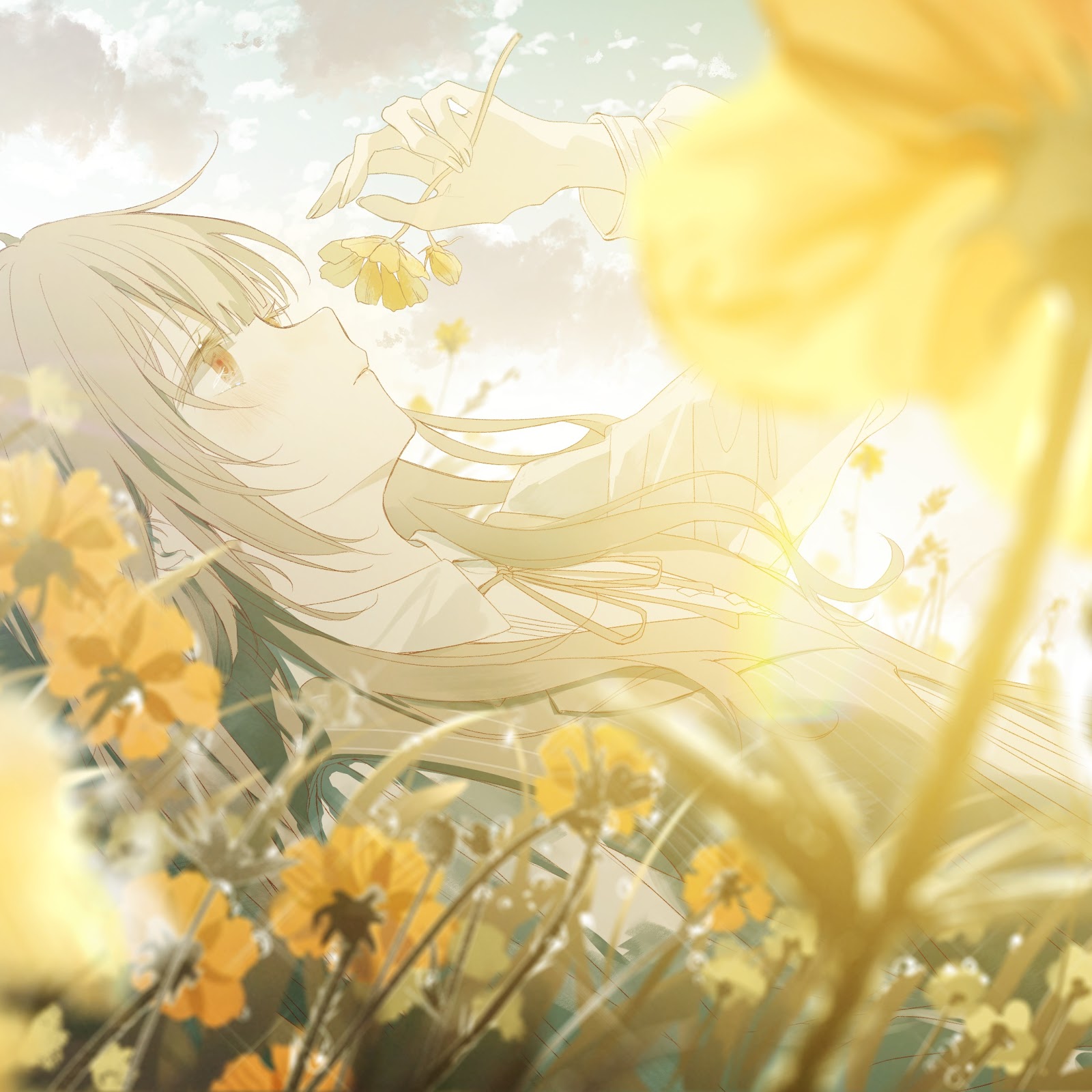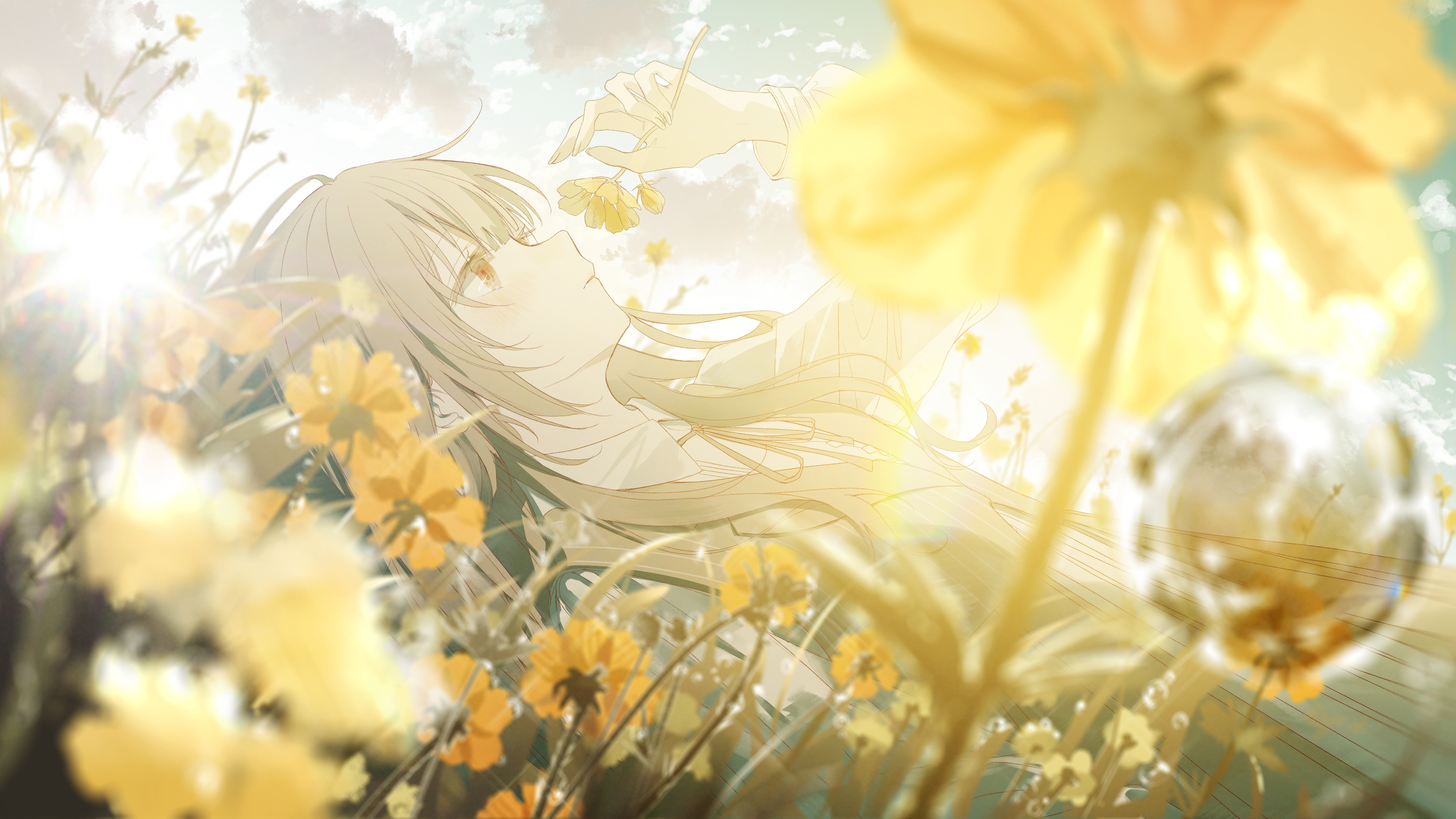Anime Girl, Field Of Flowers, Digital Art, Sunlight 4K Desktop and Mobile Wallpaper Background with a maximum resolution of 3840x2160 px.